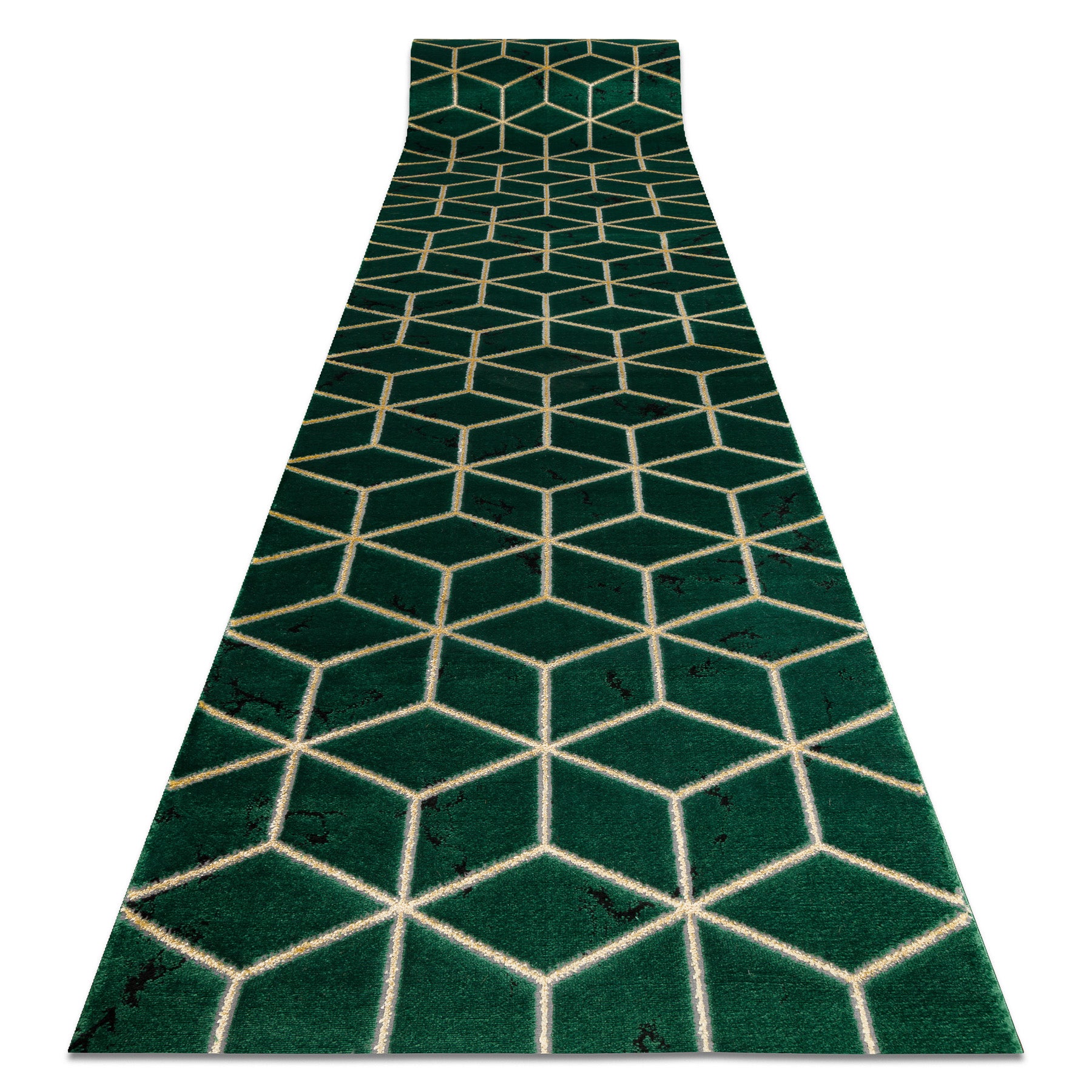 Passatoia EMERALD esclusivo 1014 glamour, elegante cubo verde bottiglia / oro 80 cm 80x300 cm