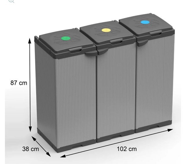 Il mobile pattumiera tris con 3 buste portasacco per rifiuti ha doppia apertura e capienza da 80 a 110 litri. Pratica e funzionale, la struttura di alta qualità è realizzata interamente Italia ed è adatta sia per l'utilizzo esterno che all'interno. Facile da montare Caratteristiche generali: Prodotto di qualità e design 100% Made in Italy Mobile pattumiera per la raccolta differenziata Dimensioni: 102x39,5x85 cm Per sacchi con capienza 80/110 lt Doppia apertura Indicato sia per esterno che per interno