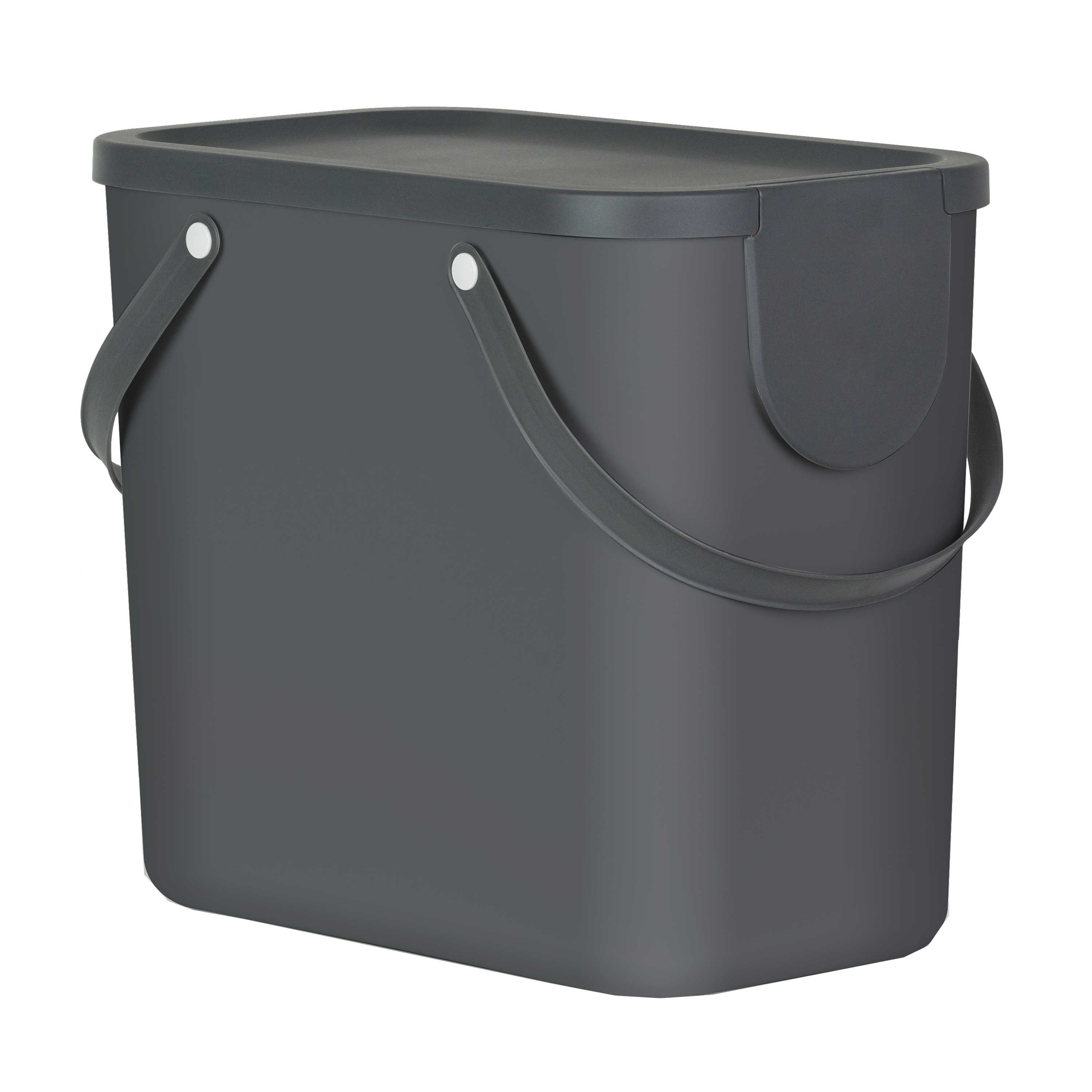Secchio per la raccolta differenziata dei rifiuti, di colore grigio, adatto alla raccolta differenziata. Capacità di 25 L. Con coperchio superiore e apertura laterale per lo smaltimento dei rifiuti. Dotato di 2 maniglie per il trasporto. Utilizzabile con sovrapposizione, possibilità di impilare più unità per facilitare la raccolta differenziata. Facile pulizia con un panno umido e sapone.