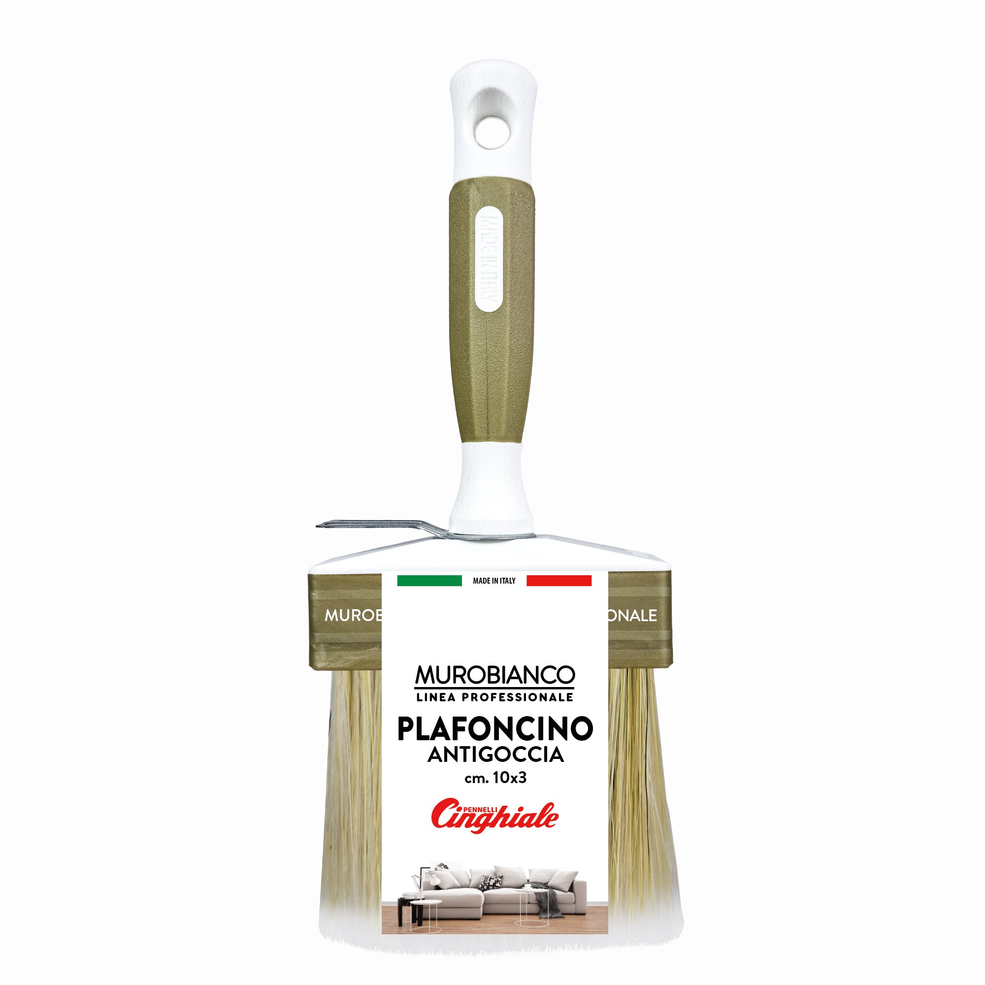Plafoncino Professionale MUROBIANCO - manico soft-grip - cm 10x3. Setola in fibra sintetica.