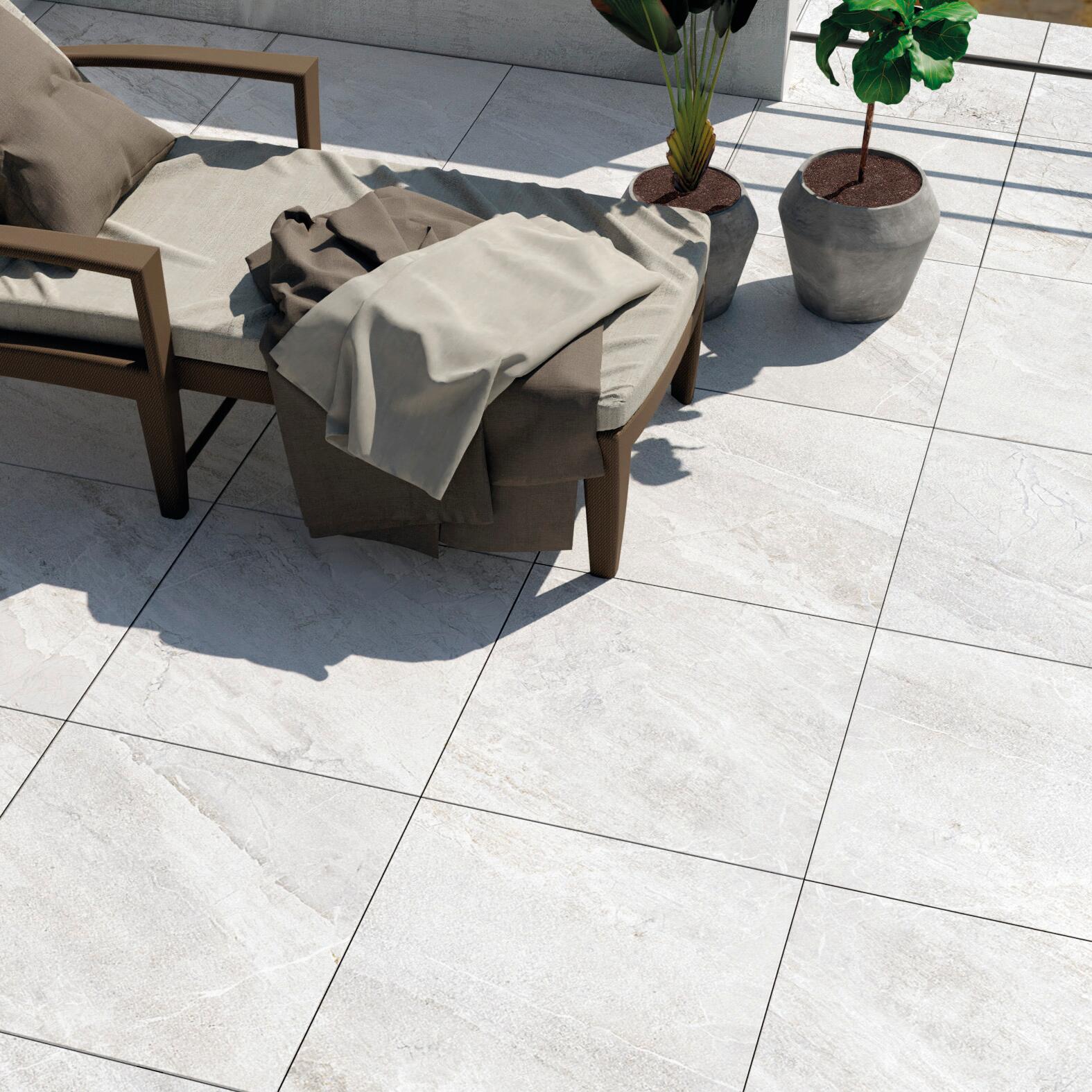 Piastrella da pavimento per esterno ideale per abbellire e completare diversi ambienti, come la terrazza. Il materiale principale è gres porcellanato non smaltato color bianco con effetto pietra. Si presenta in forma quadrata con bordo rettificato, che è ideale per la posa con una fuga minima di 2 mm e che semplifica la pulizia e la manutenzione delle superfici, dando uniformità ed eliminando l'effetto bombato della piastrella pressata. Questa piastrella da pavimento ha uno spessore di 20 mm. Alta qualità, funzionalità ed estetica per valorizzare gli ambienti sia interni che esterni residenziali e commerciali, ed ideale per un passaggio importante. Ha il plus di essere carrabile. Confezione da 0,72 m² contenente 2 pezzi, 60x60 cm.