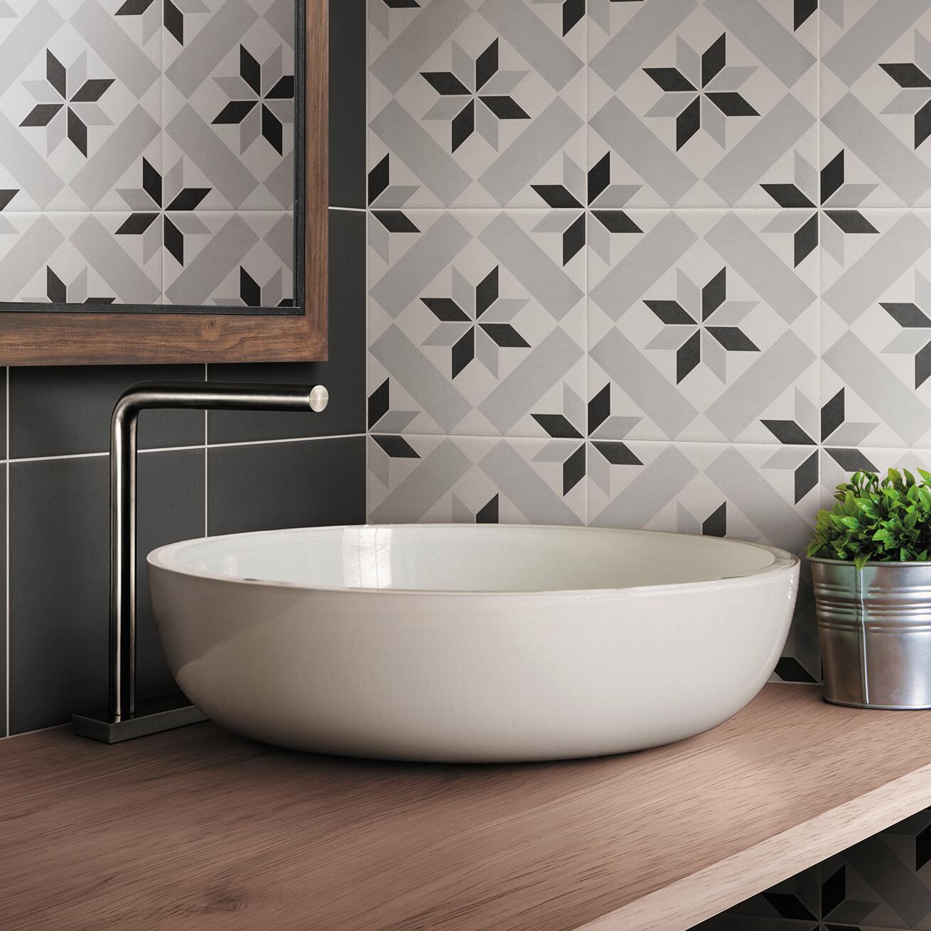 Piastrella da pavimento e rivestimento interno in gres porcellanato 20 x 20 cm non rettificato smaltato grigio, bianco e nero opaco Patrimony R9 traffico intenso (pei 4/5) Sp. 7.4 mm 1.59 mq