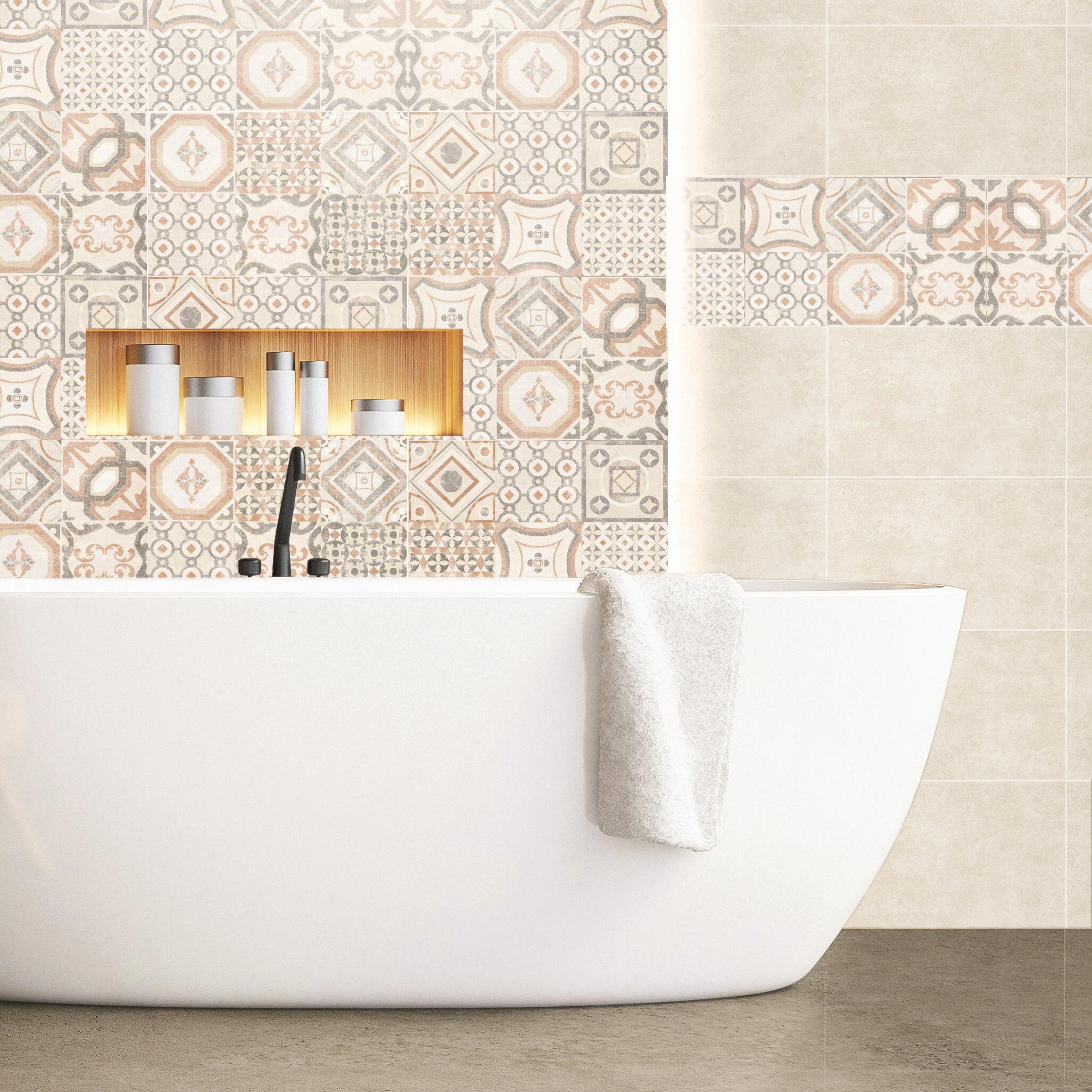 Piastrella da rivestimento interno in maiolica 25 x 40 cm smaltato beige opaco decoro Paris traffico medio forte (pei 3/5) Sp. 6.1 mm 2 mq
