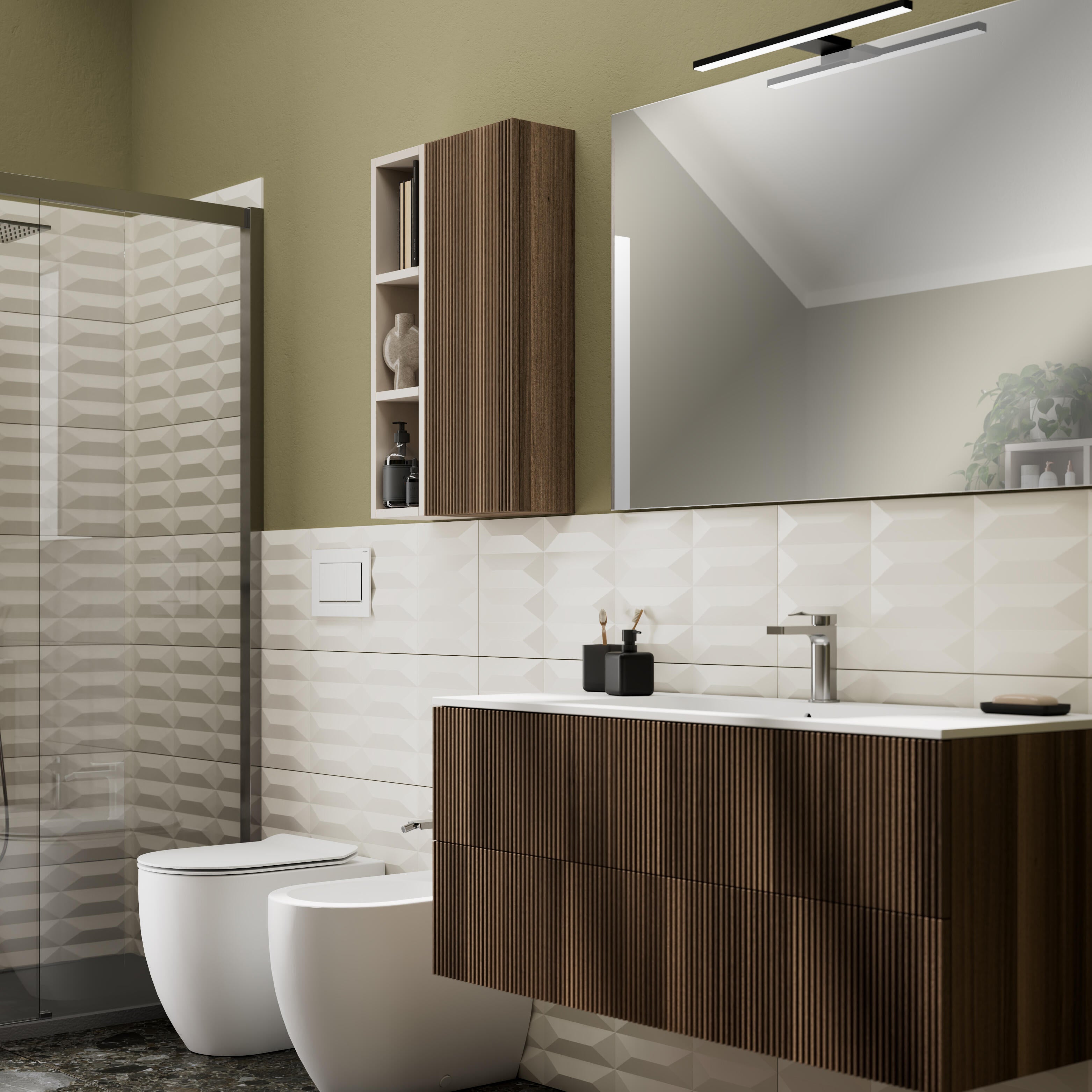 Piastrella da rivestimento interno in gres porcellanato 30 x 90 cm rettificato panna satinato Interni Cream 3D decoro Sp. 10 mm 1.35 mq