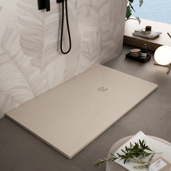 Piatto doccia mineralmarmo roma con griglia in tinta colore crema, dimensioni 100x120
