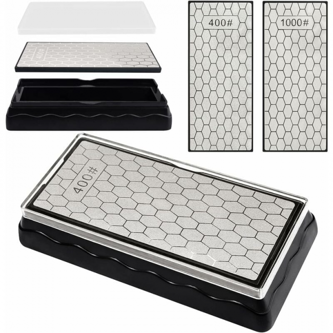 Affilatura su due lati: riceverai la pietra per affilare con lati diversi: il lato da 400# per l'affilatura grossolana e il lato da 1000# per l'affilatura fine.