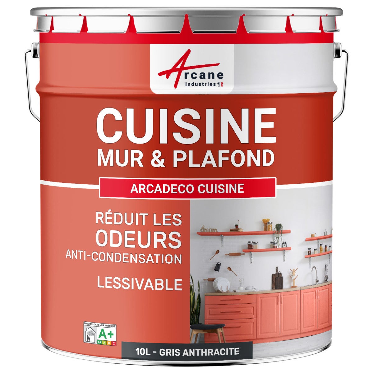 Pittura cucina lavabile, parete e soffitto: ARCADECO - 1216 - 10 L Grigio Antracite - RAL 7016 - ARCANE INDUSTRIES