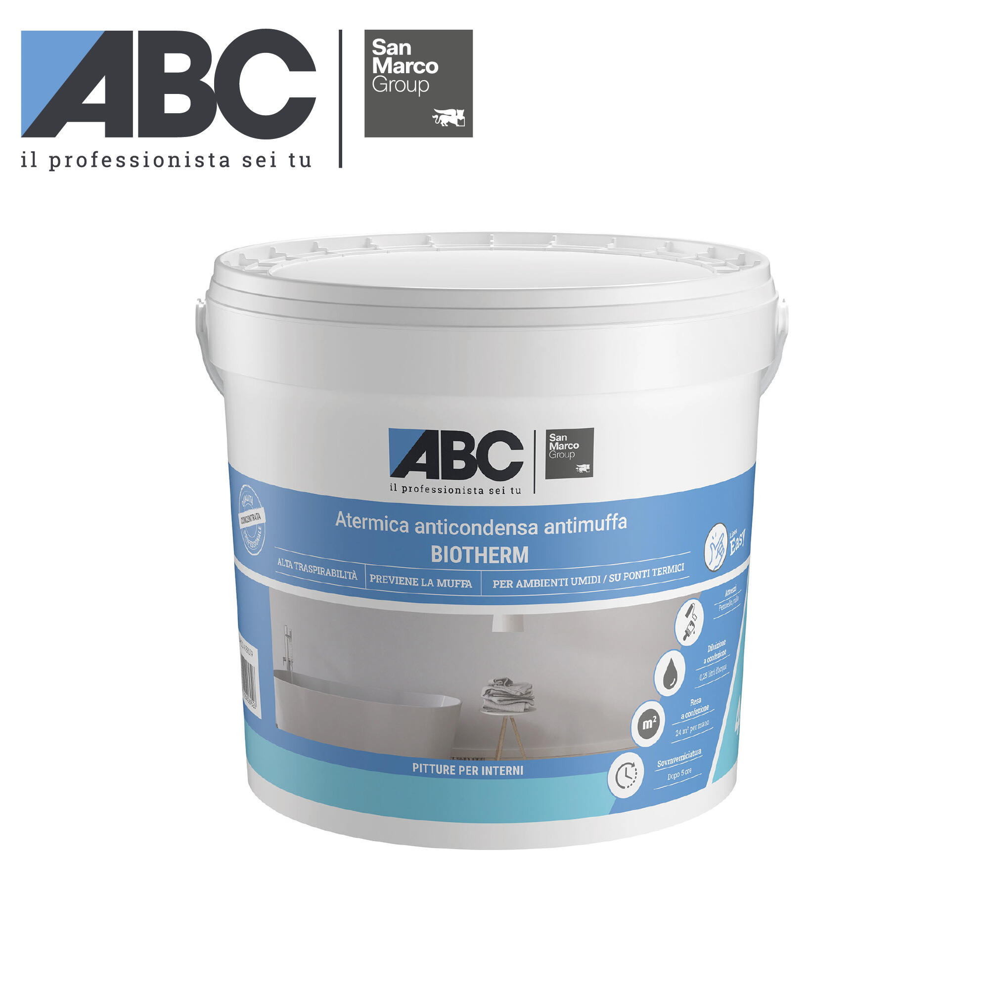 Pittura per interni per bagno e parete e soffitto anti-condensa, antimuffa, antiumidità, ABC Biotherm atermica bianco opaco, 4 L