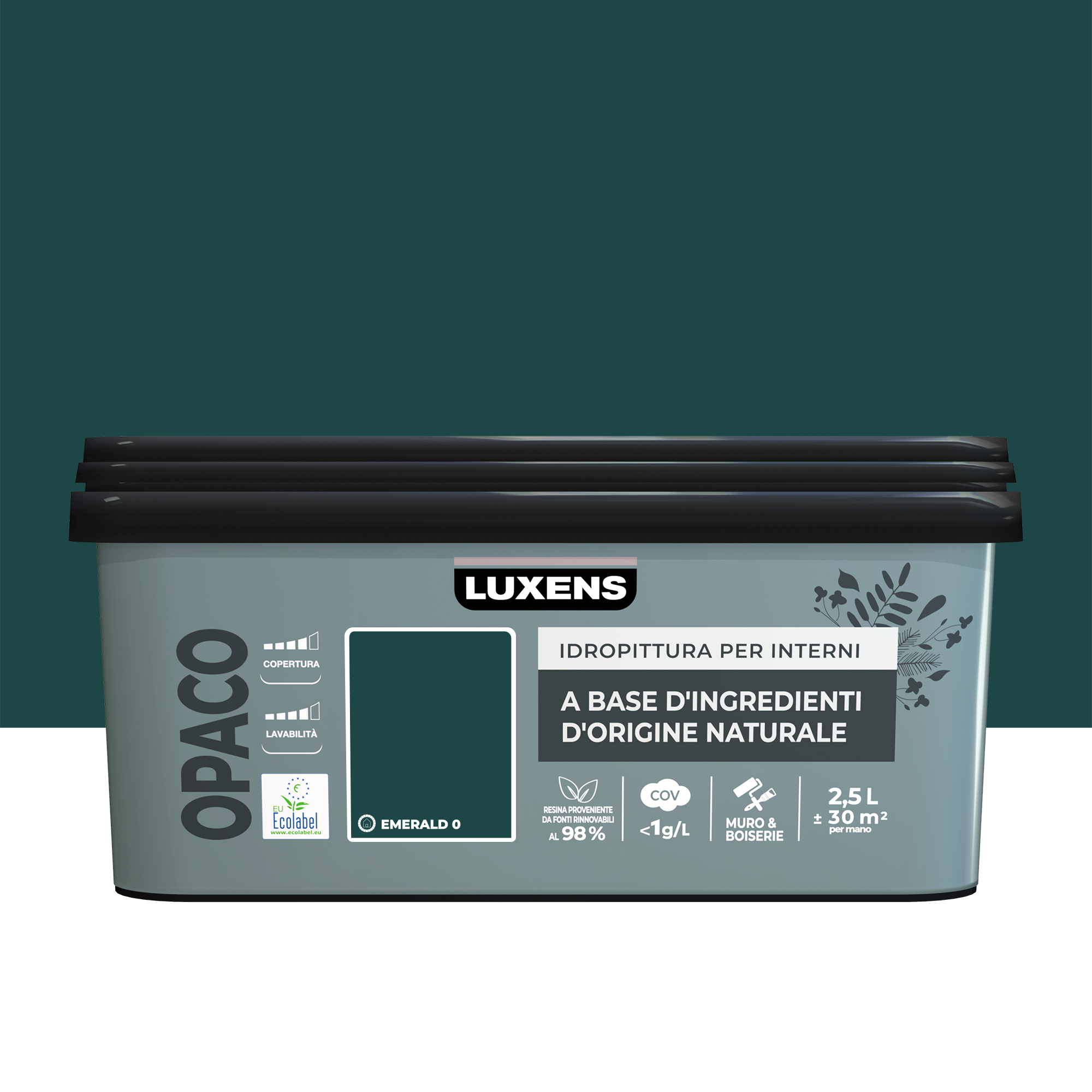 Pittura per interni per parete e soffitto lavabile, LUXENS Biobased verde emerald 0 opaco, 2.5 L