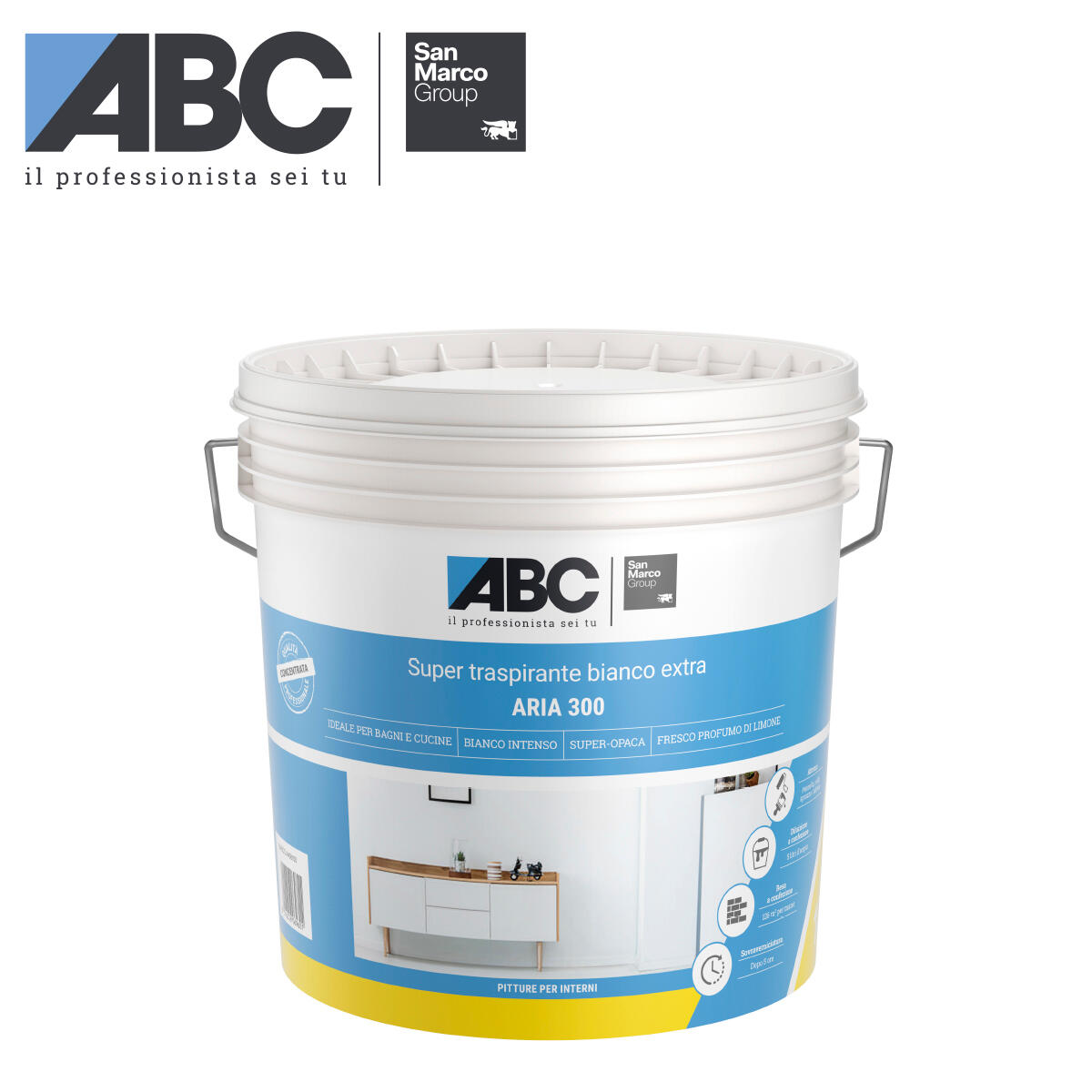 Pittura murale da interno ABC di colore bianco. Confezione da 14 litri che permette di coprire fino a 126 metri quadrati di superficie. L'aspetto opaco maschera le imperfezioni della parete e le irregolarità dell’ambiente. Prima di utilizzare il prodotto è necessario diluirlo con acqua. La percentuale di diluizione è del 35%. Il prodotto è traspirante il che significa che consente alle pareti di permeare vapori e umidità. Si tratta quindi di un tipo di prodotto consigliato per ambienti molto umidi e soggetti a formazione di condensa come bagni e cucine. Il tempo di asciugatura della pittura è di 24 ore, ma sono sufficienti 5 ore di asciugatura tra una mano e l'altra. Trattandosi di una pittura a base acqua, eventuali gocce che cadono sulle superfici risultano facili da pulire con acqua calda. Data la composizione chimica del prodotto è sufficiente utilizzare acqua per la pulizia degli attrezzi.
