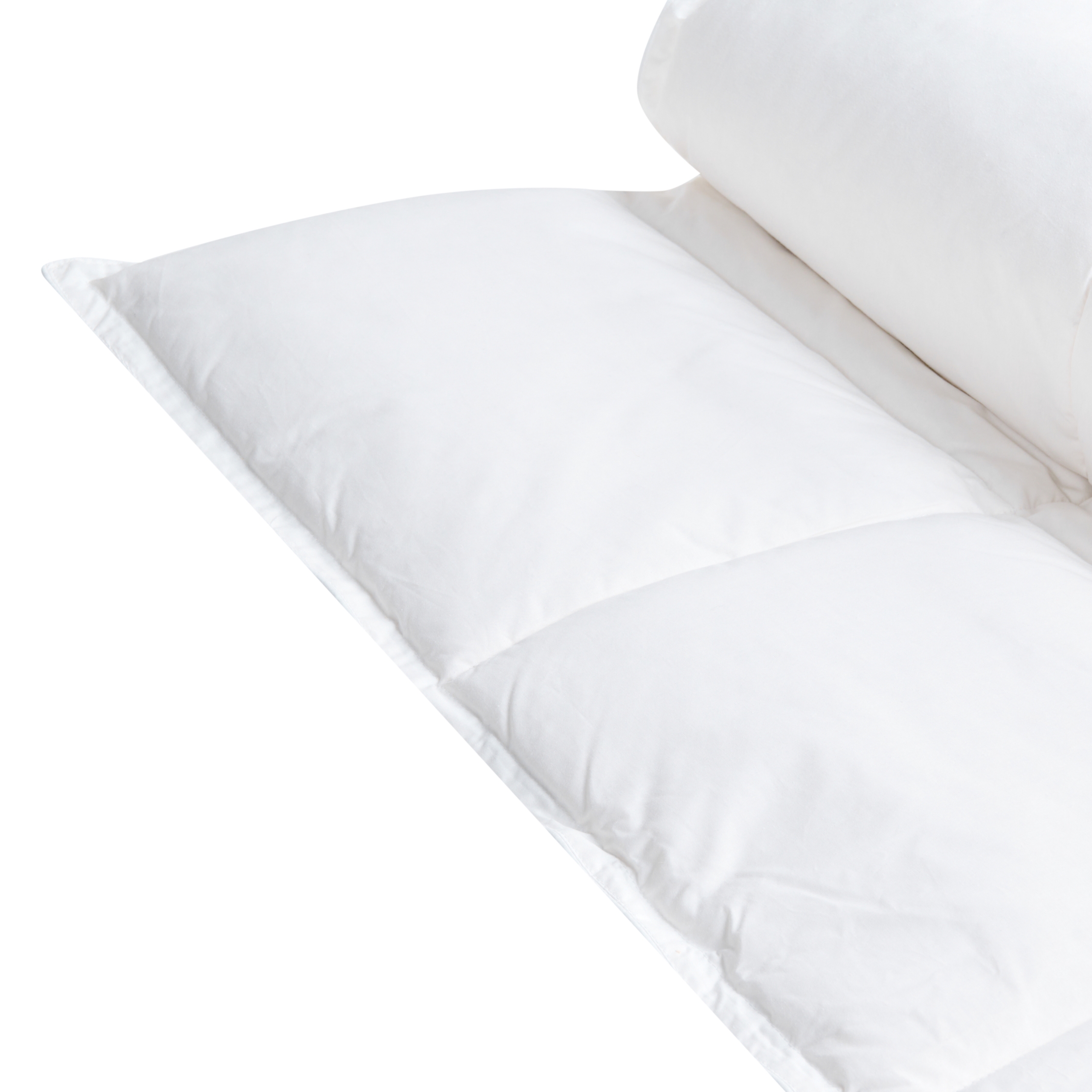 Morbido piumino extra caldo, 13.5 TOG. Questo superbo piumino migliorerà sicuramente il tuo comfort durante il sonno, specialmente durante le fredde notti invernali. La fodera, realizzata in cotone japara permeabile, è delicata sulla pelle e consente un corretto ricircolo dell'aria. L'imbottitura in soffice piuma d'anatra e la sua trapuntatura classica, offrono una comodità estrema.