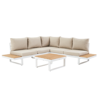 Goditi un aperitivo tra amici comodamente seduto con questo modulo Persea. Elemento complementare della serie Persea, questa poltrona due in uno unisce comfort ed eleganza per valorizzare il vostro terrazzo. Associato al soggiorno angolare Persea, permette di aggiungere un ulteriore posto dove ricevere i propri ospiti. La sua struttura in alluminio antracite si pulisce semplicemente con un panno umido, rendendo il tutto leggero e facile da spostare. I suoi cuscini grigi in poliestere riciclato al 100% offrono un comfort ottimale. Idrorepellenti e removibili, sono fissati alla struttura per evitare che venga presa dal vento. Una gamma calda e modulare Progettata in alluminio resistente alle intemperie, l'intera gamma Persea porterà un tocco bimaterico di grande design sulla vostra terrazza. Integrato nel soggiorno angolare Persea, questo modulo si adatta armoniosamente agli altri elementi della collezione. L'intera gamma è disponibile anche in bianco. Prolunga il tuo momento di relax in terrazza con il tavolo e le sedie da giardino Persea, o il lettino prendisole della stessa serie. Materiali resistenti e durevoli Robusta e durevole, questa poltrona da esterno è progettata per durare. Il teak è noto per la sua robustezza, così come l'alluminio, che è resistente agli agenti atmosferici. Per garantire una lunga durata al vostro mobile, si consiglia di coprirlo durante i lunghi periodi di inutilizzo per proteggerlo dallo sporco e dalle intemperie, e di applicare annualmente olio per teak sul legno dei braccioli. Le fodere dei cuscini rimovibili sono lavabili in lavatrice per una facile manutenzione. Sono disponibili pezzi di ricambio riparabili per prolungare la vita dei tuoi mobili.