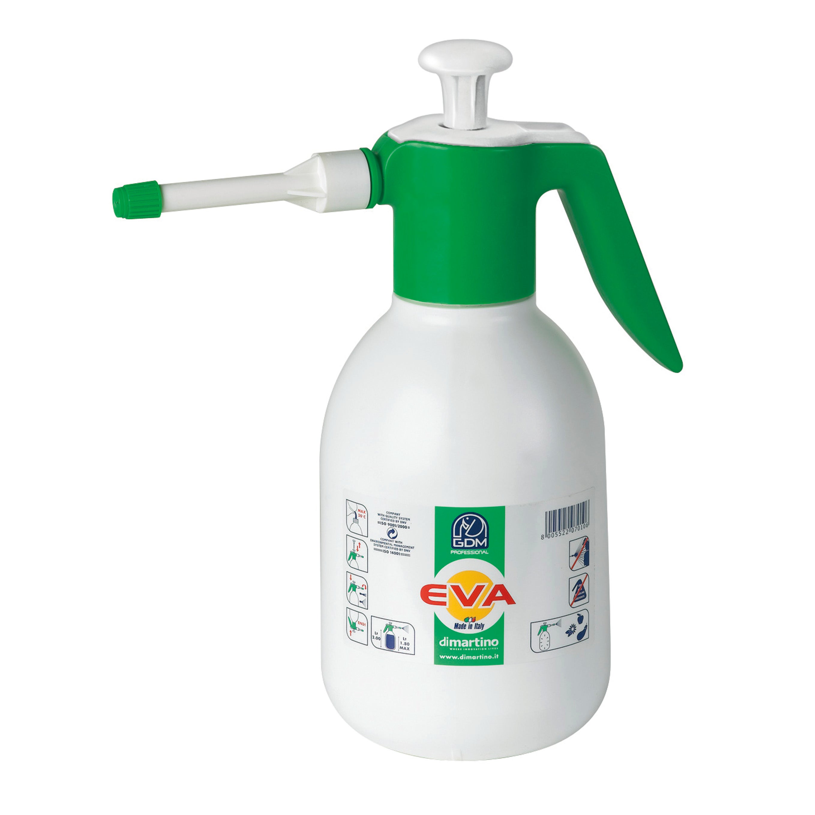 Pompa a pressione da 2 litri ricca di accessori ideale per il mantenimento e cura di piante da casa, terrazzo e serra. valvola che mantiene a lungo la pressione beccuccio sostituibile asta in metallo leva di sicurezza nebulizzazione uniforme molle in acciaio inox getto regolabile altezza spruzzo 400 cm angolo spruzzo 60° capacità massima 2.00 lt capacità pompata 42 cc lunghezza spruzzo 800 cm pressione 2 bar Pompa a pressione con guarnizioni NBR