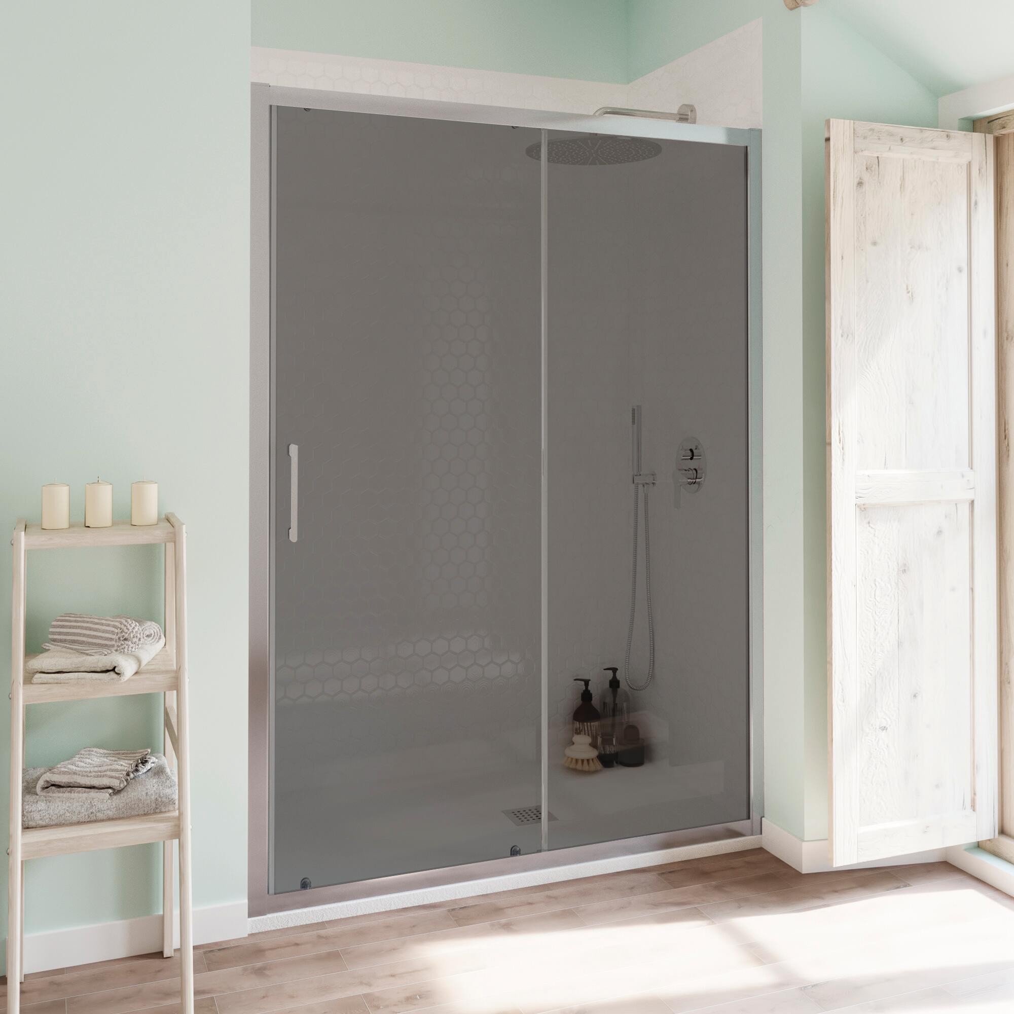 Porta doccia scorrevole Bilbao L 166-170 cm x H 190 cm x SP 6 mm, profilo cromo, vetro Fumè