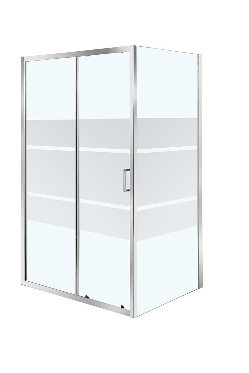 Porta doccia Zesk con apertura scorrevole, larghezza 120 cm, altezza 190 cm con spessore del vetro di 6 mm per una migliore stabilità. Profilo cromato con finitura del vetro serigrafato.