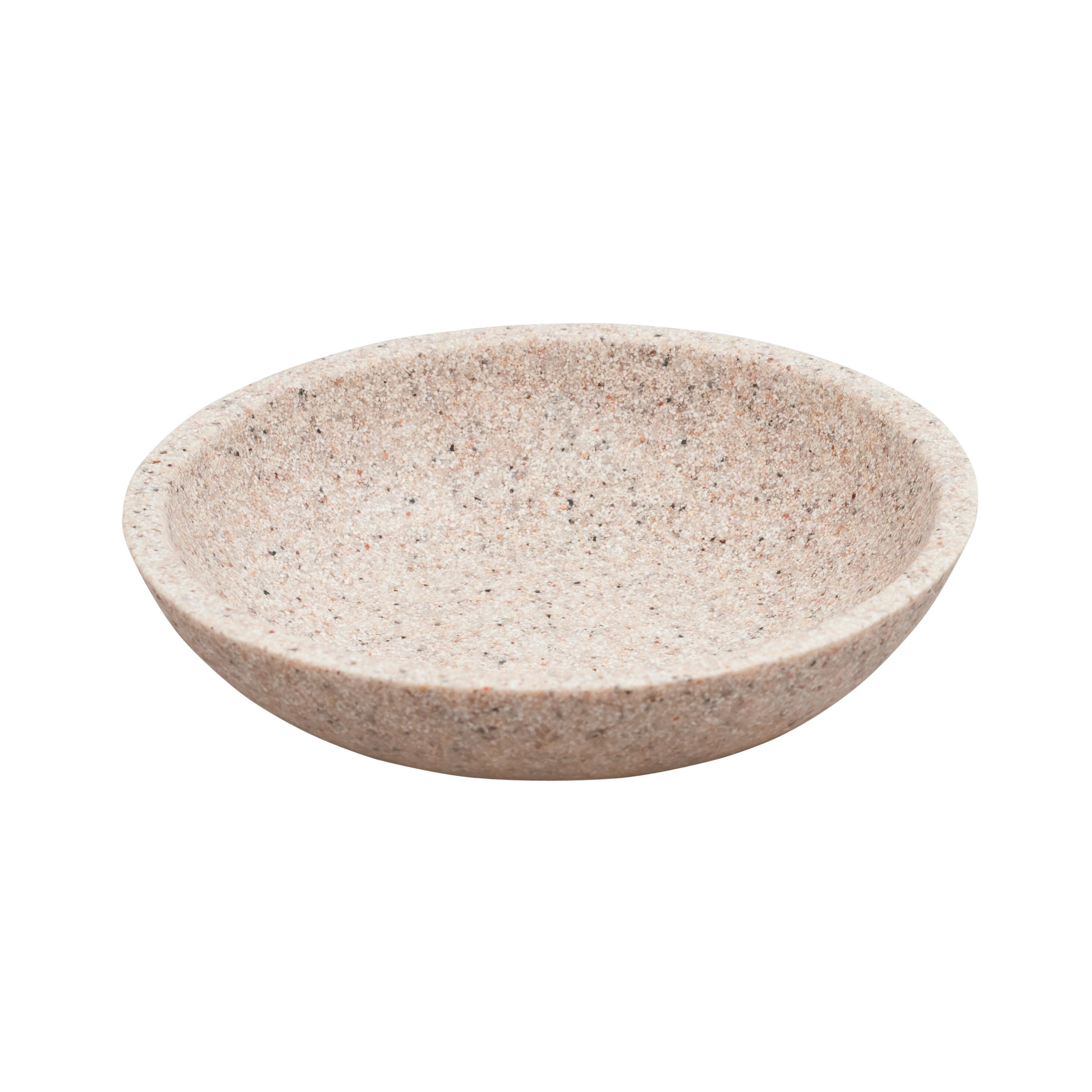 Porta sapone Afra realizzato in resistente poliresina color sabbia. Designer Carlo Martino per Metaform. Lo stile inconfondibile della linea Afra è disponibile anche nelle finiture bianco matt, nero matt e grigio ardesia.