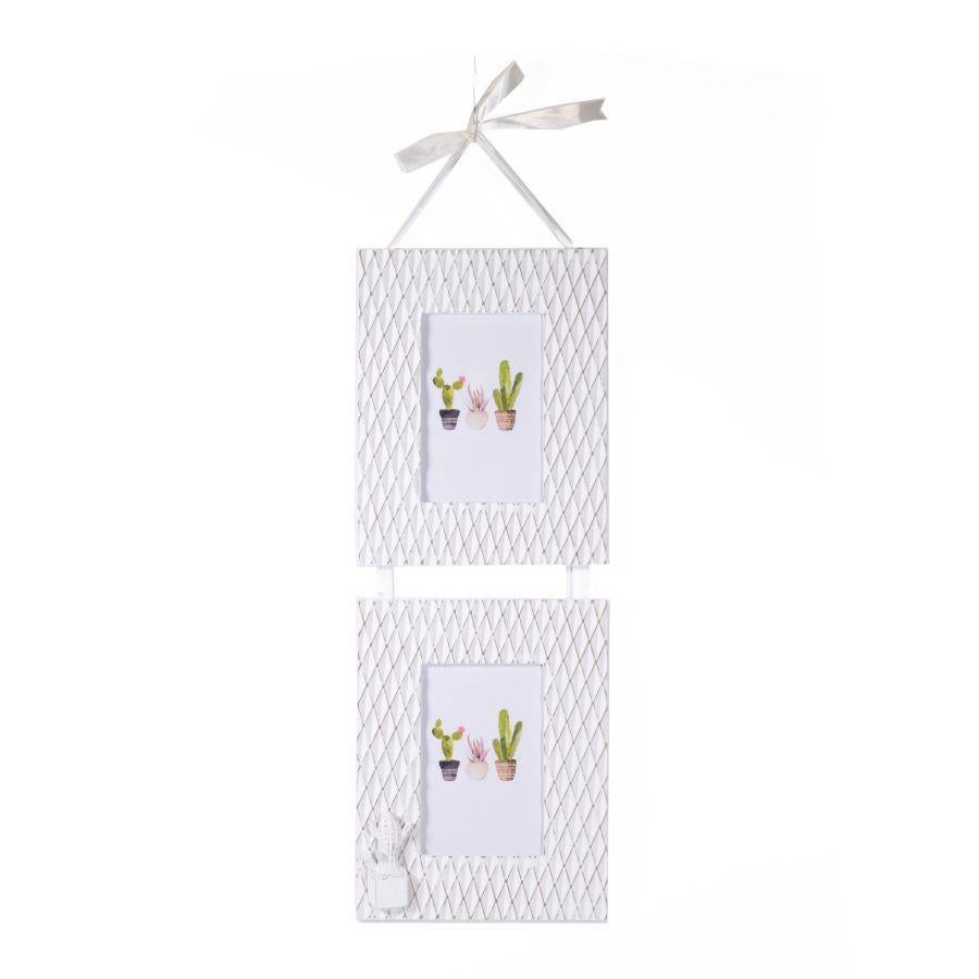 Portafoto muro cactus legno bianco multiplo 2p cm19x58x1