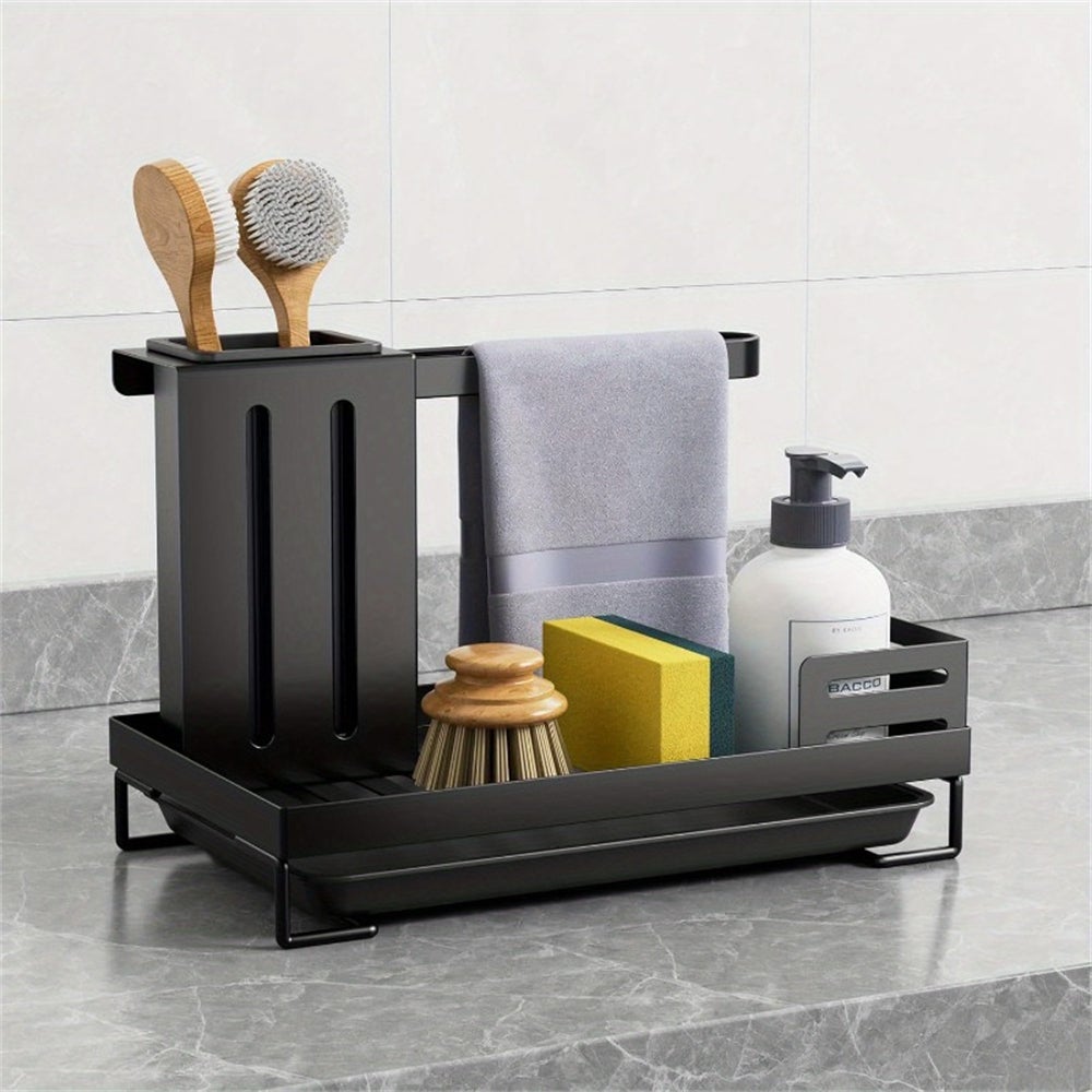 Portaoggetti per cucina e bagno con vaschetta di scarico – scolapiatti multifunzionale con porta spugna e porta scopino