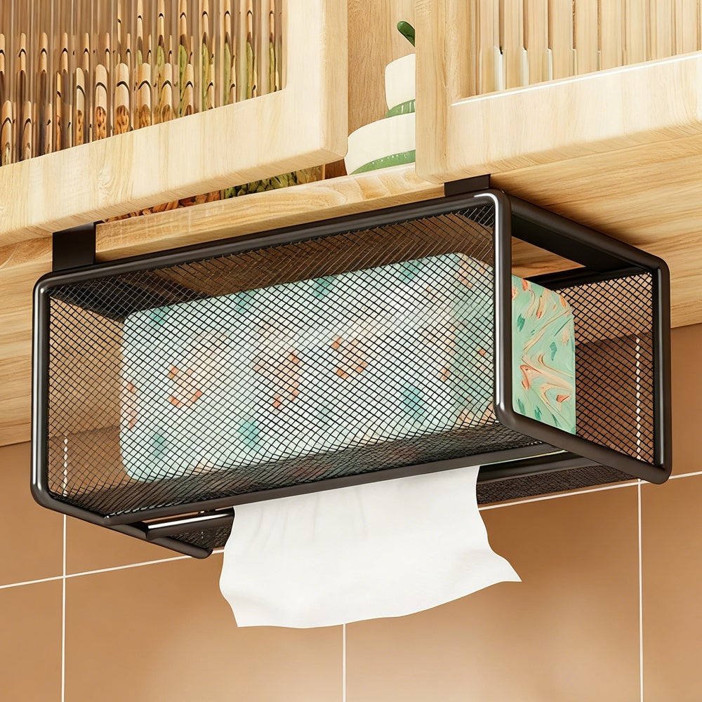 Portarotolo da cucina, supporto da parete per mobiletto senza fori, portarotolo da cucina, portaoggetti sospeso, scatola per fazzoletti capovolta