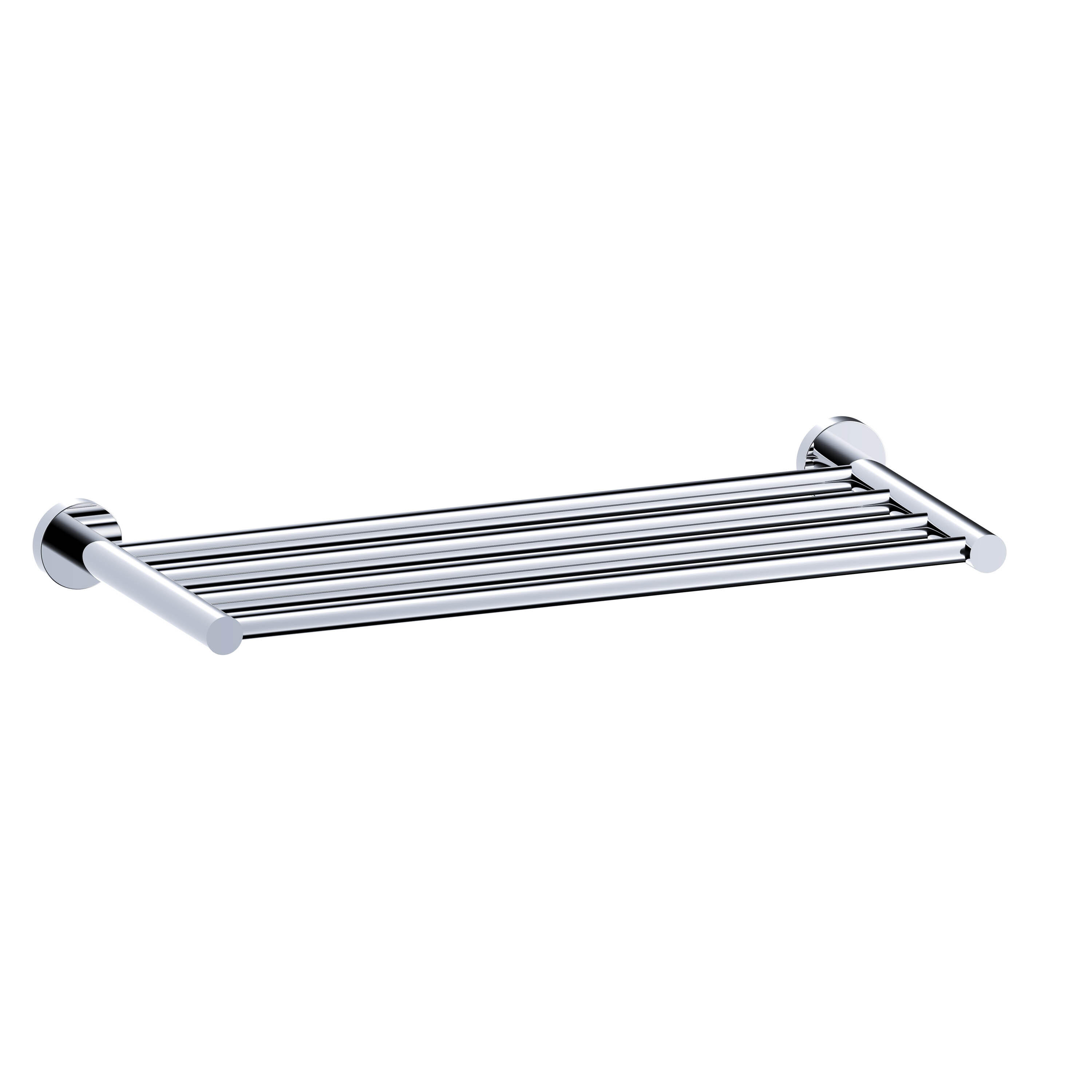 porta asciugamani per hotel da fissare a parete, realizzato in metallo con finitura cromo lucido, con 4 barre stendibiancheria. è ideale per appendere più asciugamani contemporaneamente o per riporli piegati e averli a portata di mano. misure: 55 cm di larghezza.