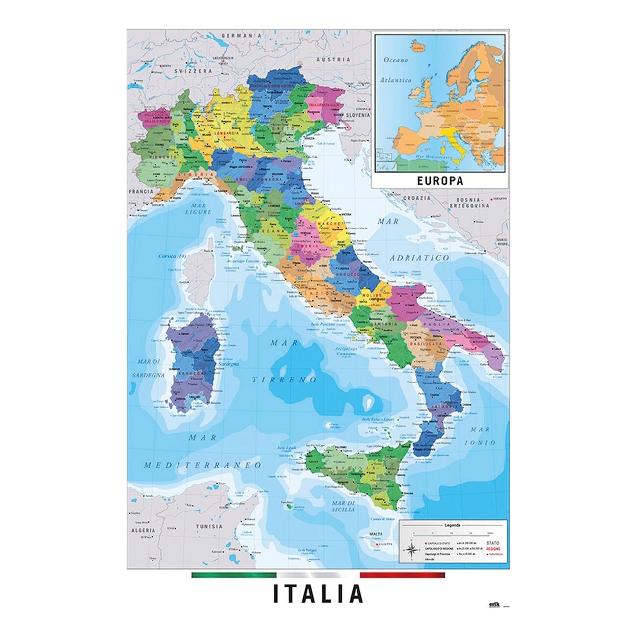 Il poster Italy è la scelta ideale per decorare gli ambienti domestici e dare un tocco di personalità. L'immagine in carta è perfetta per dare un tocco a tema carta geografica alle tue pareti. L'immagine ha dimensioni 61 x 91,5 cm.