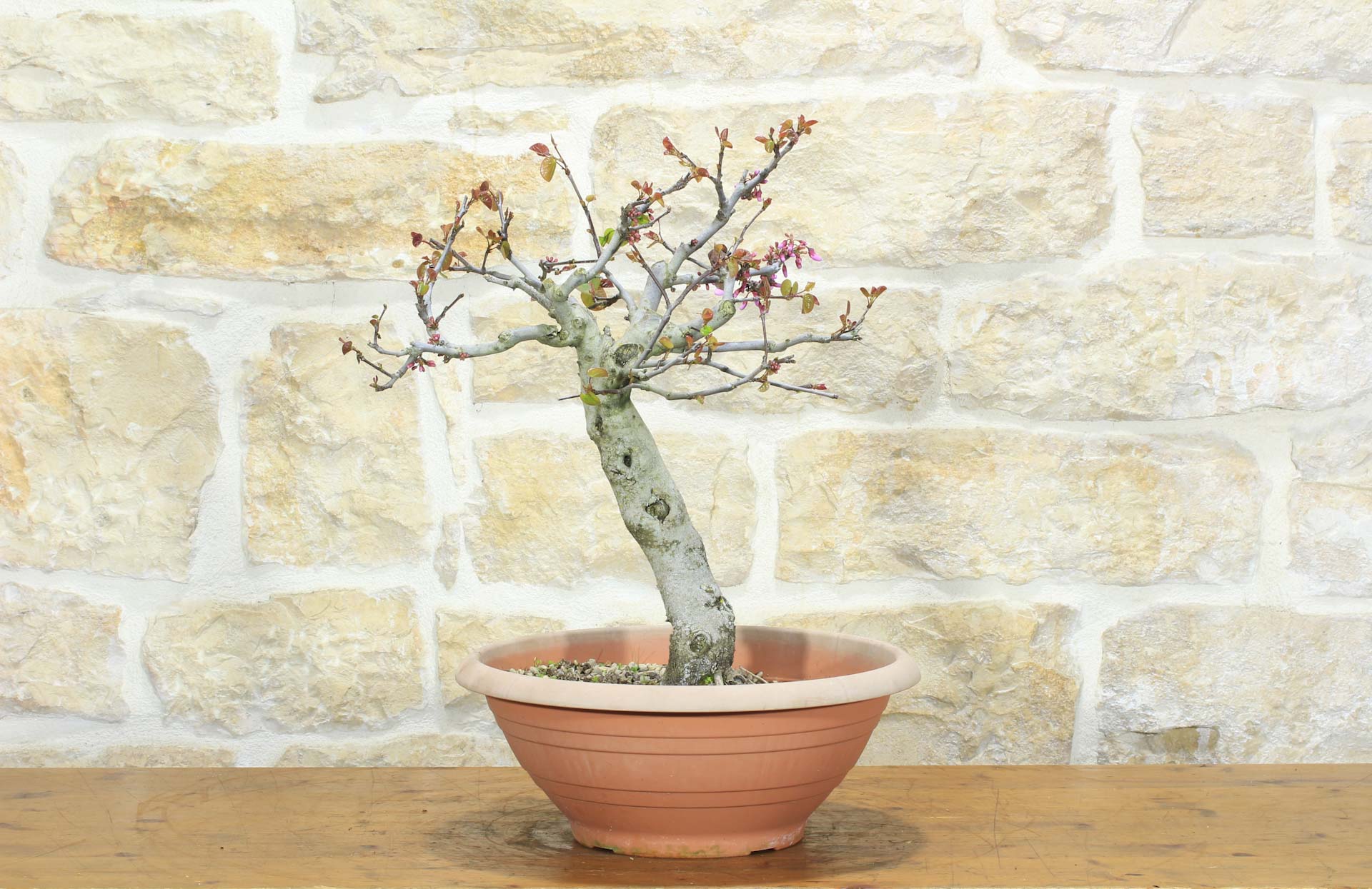 Pre bonsai di Cercis (Cercis Siliquastrum) comunemente chiamato Albero di Giuda, in vaso tondoda coltivazione.