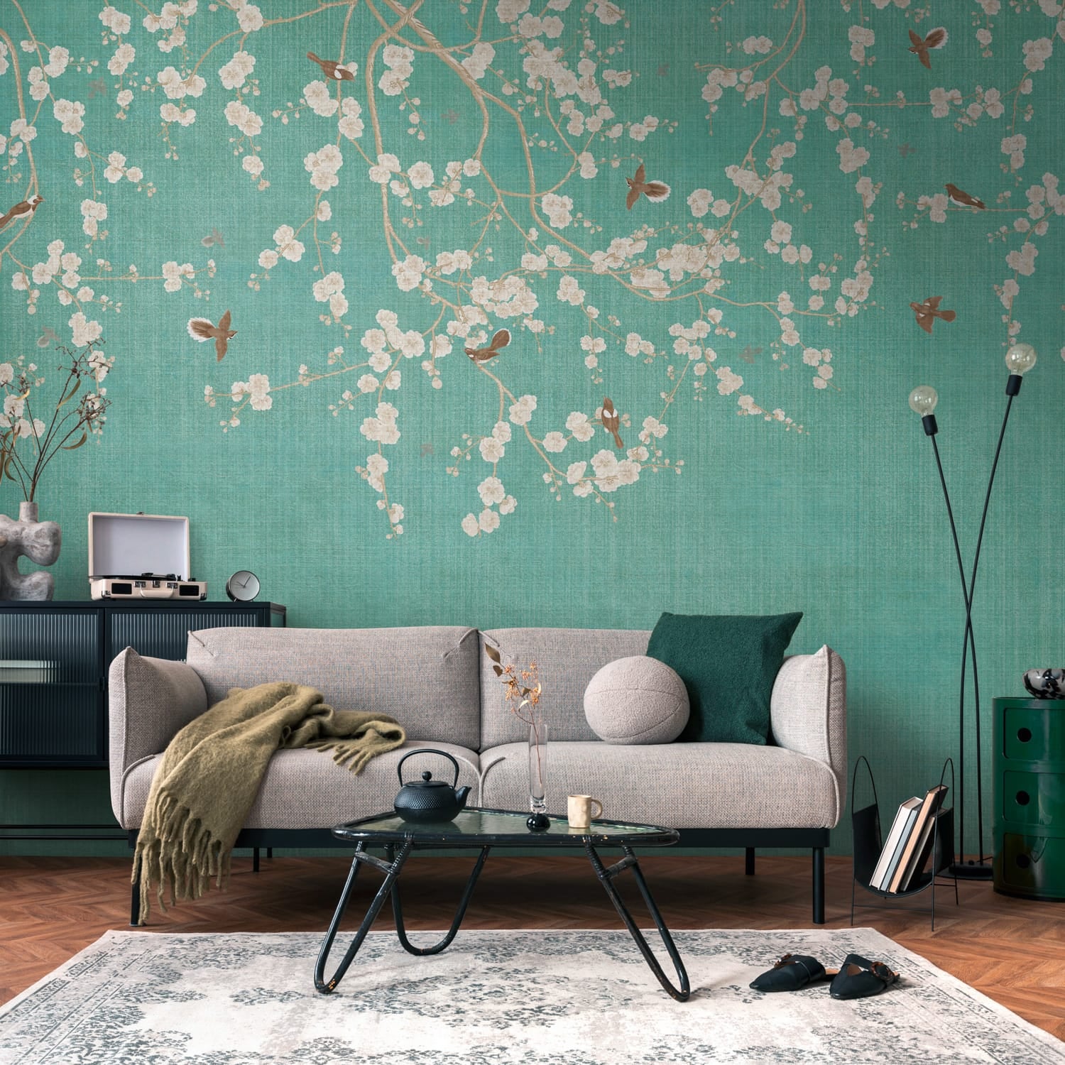 Motivo aspetto tessile floreale fiori asiatico uccelli