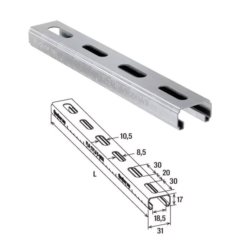 Binari di montaggio con profilo a U per la creazione di installazioni orizzontali e verticali sicure
