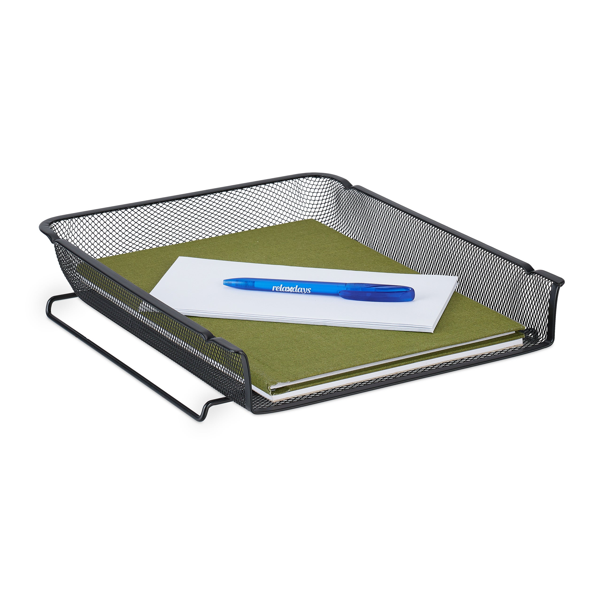 Vaschetta Portadocumenti, Design a Rete, Portalettere per Ufficio, Acciaio, Impilabile, 6,5x28,5x34 cm, Nero, Relaxdays