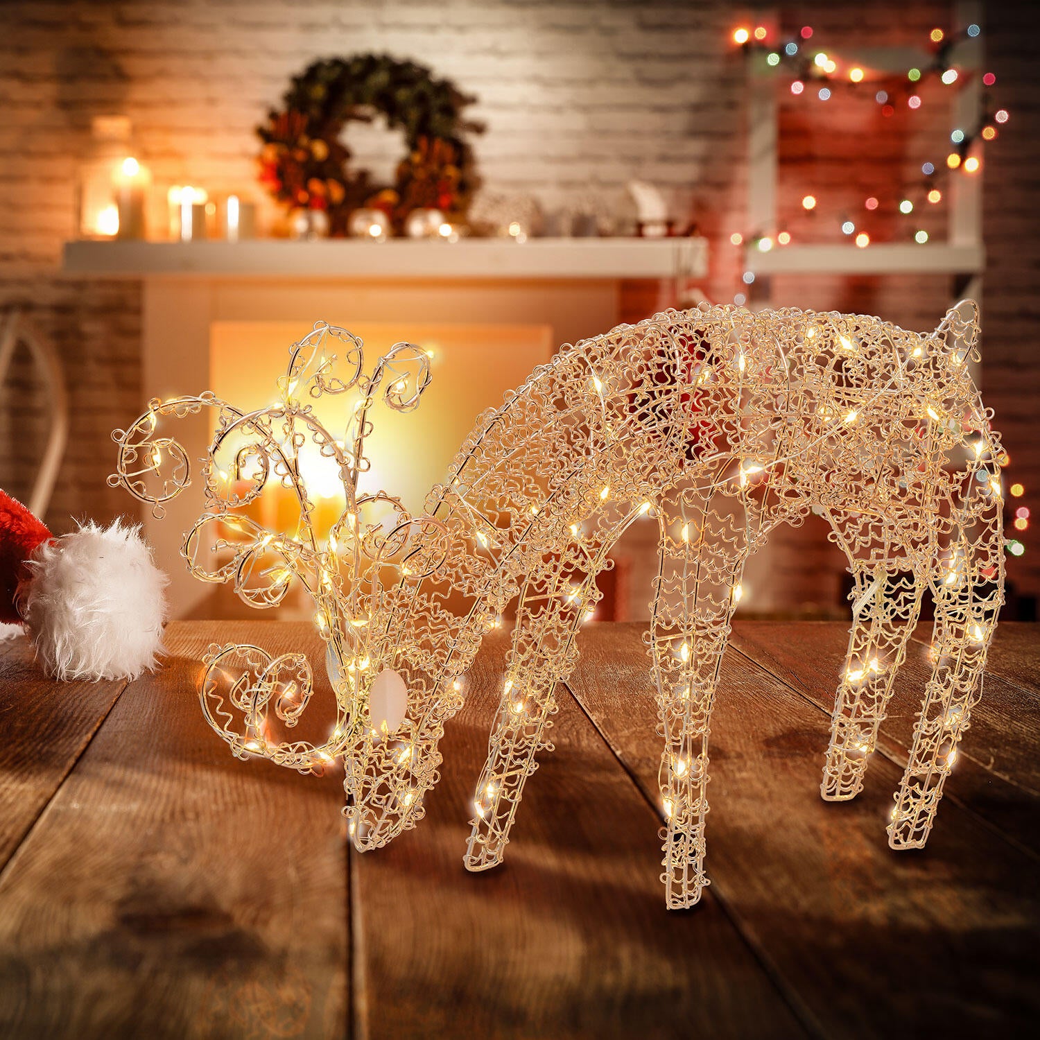 Renna luminosa 100 lampadine led bianco caldo L 1.6 m x H 25 cm