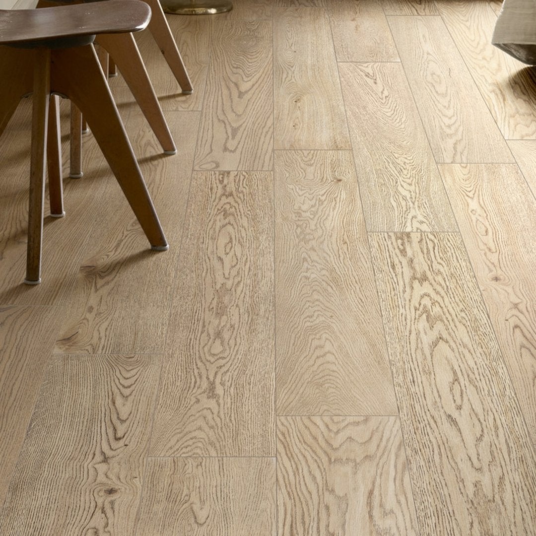 Listoni in gres porcellanato ispirati ad un raffinato Rovere con leggera struttura che percorre nodi e spaccature. Una lieve stonalizzazione dona realismo ed eleganza. Materiale robusto e durevole, ideale per pavimenti e rivestimenti interni.