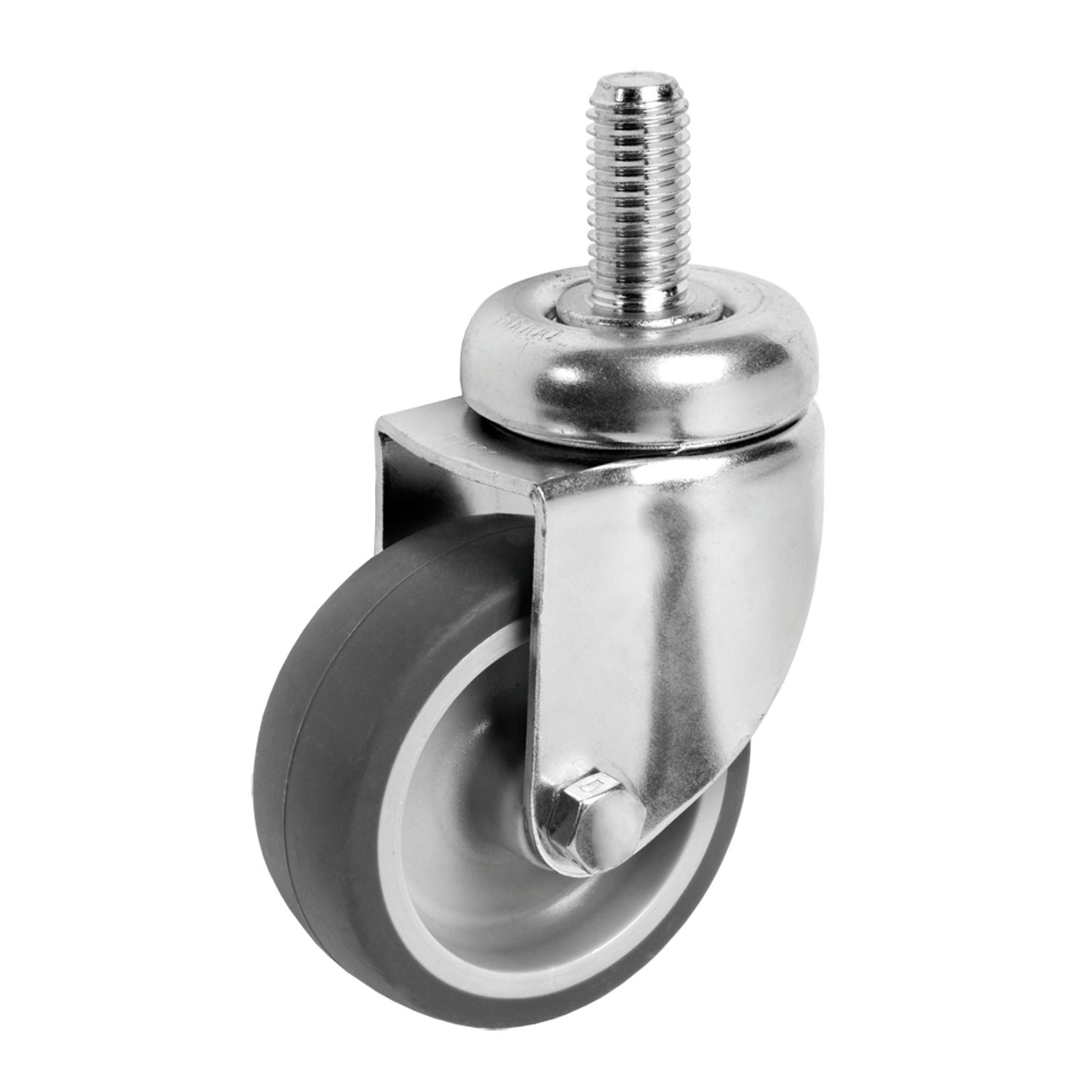 Ruota con perno filettato in polipropilene grigio, diametro 60 mm. Portata massima 60 kg