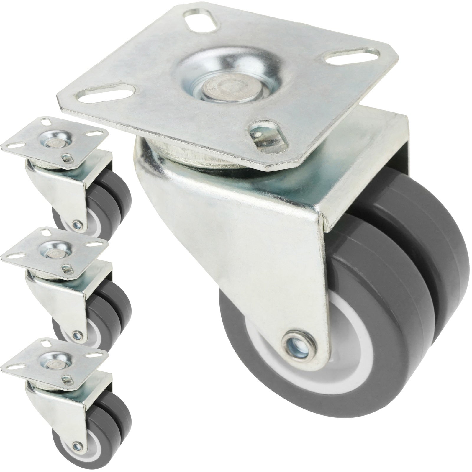 Ruote girevoli doppie design industriale in poliuretano e PVC senza freno, 50 mm, grigio (confezione da 4)