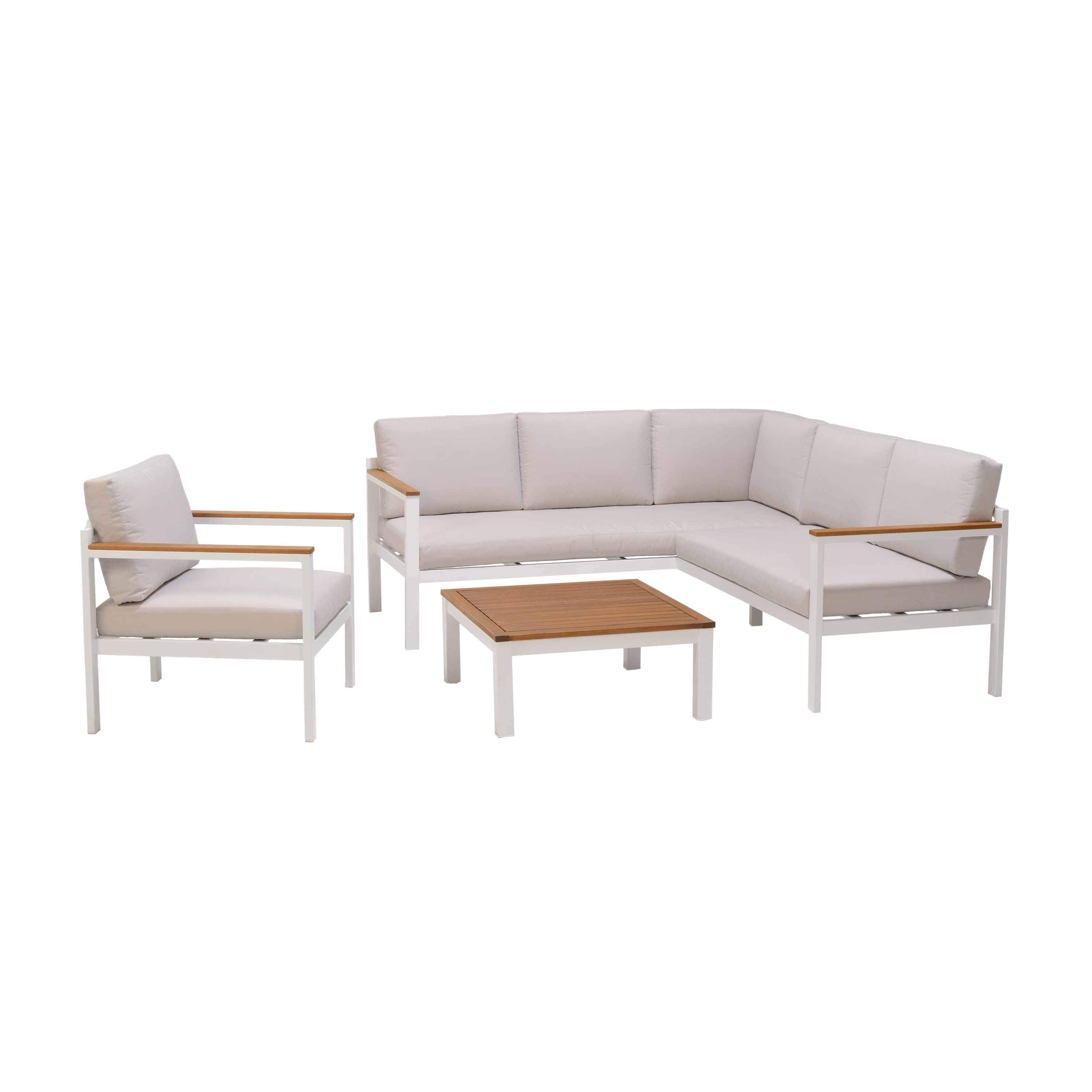 Salotto da giardino angolare per 5 persone bianco Oris NATERIAL con cuscini in poliestere beige