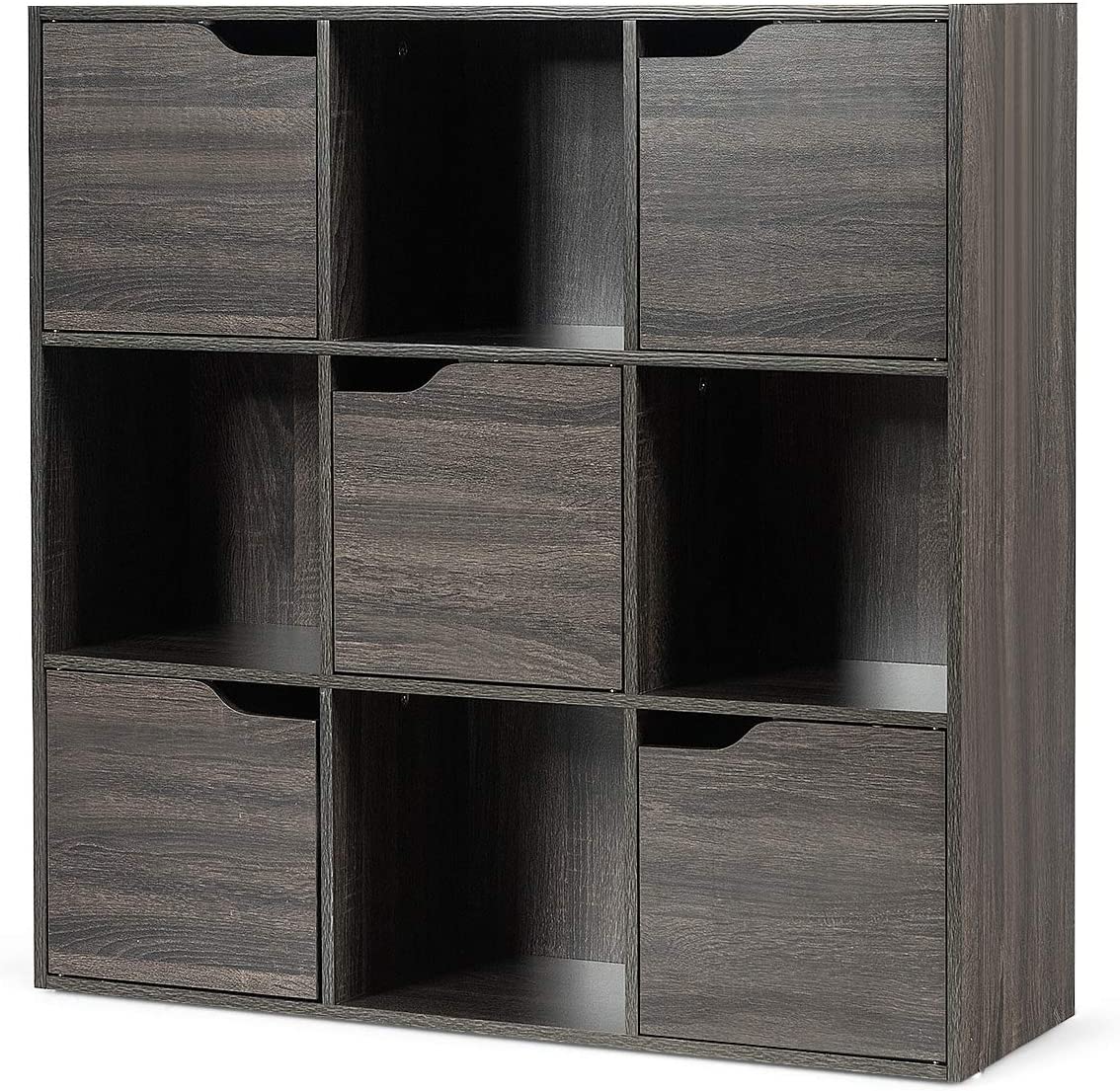 Scaffale Portaoggetti Guardaroba Mensola Libreria in Legno Mobile con 9 Cubi, Scaffale Cubo Porta Libri (Grigio-Marrone)