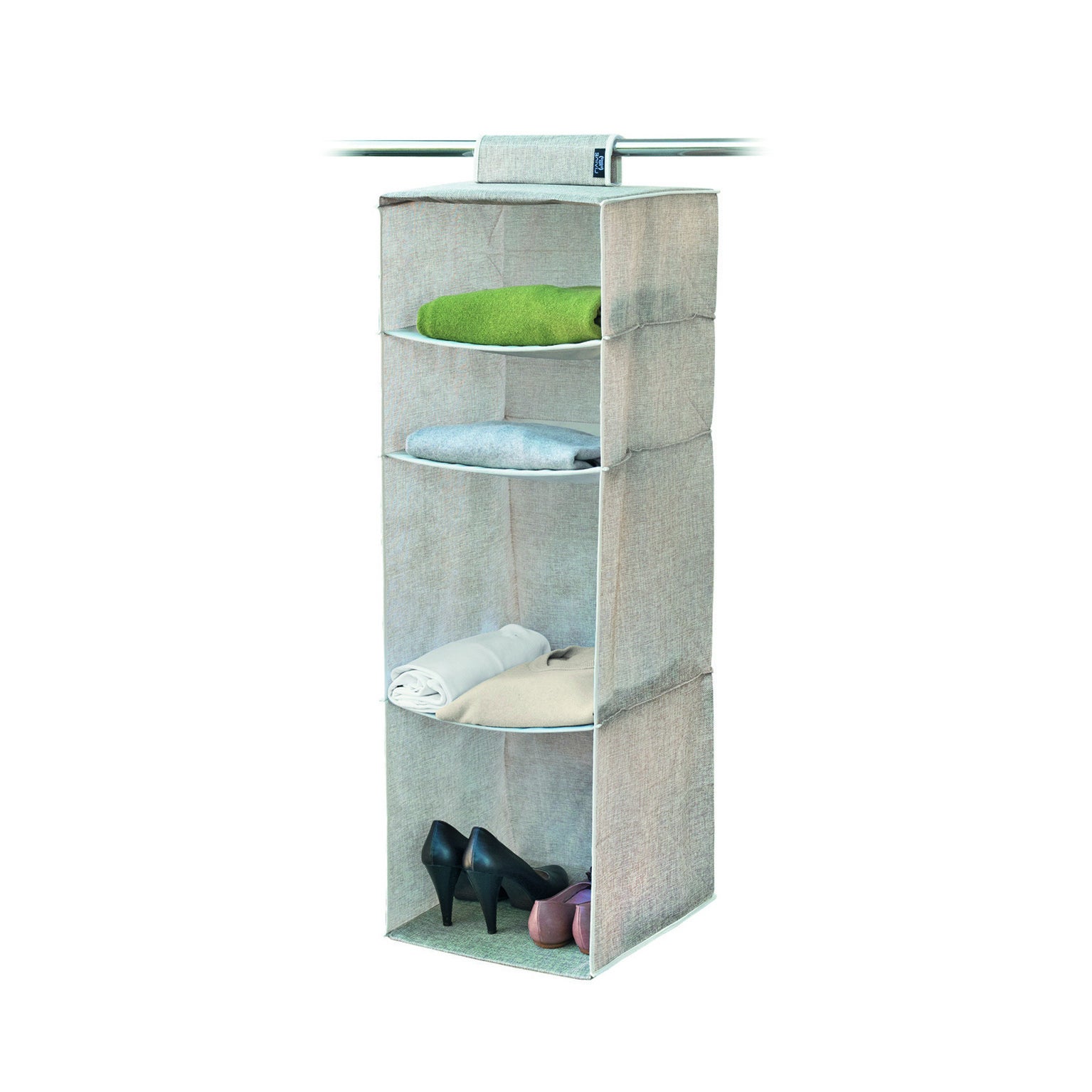 Organizer in policotone da appendere beige con 4 ripiani. Si appende all'asta interna dell'armadio.