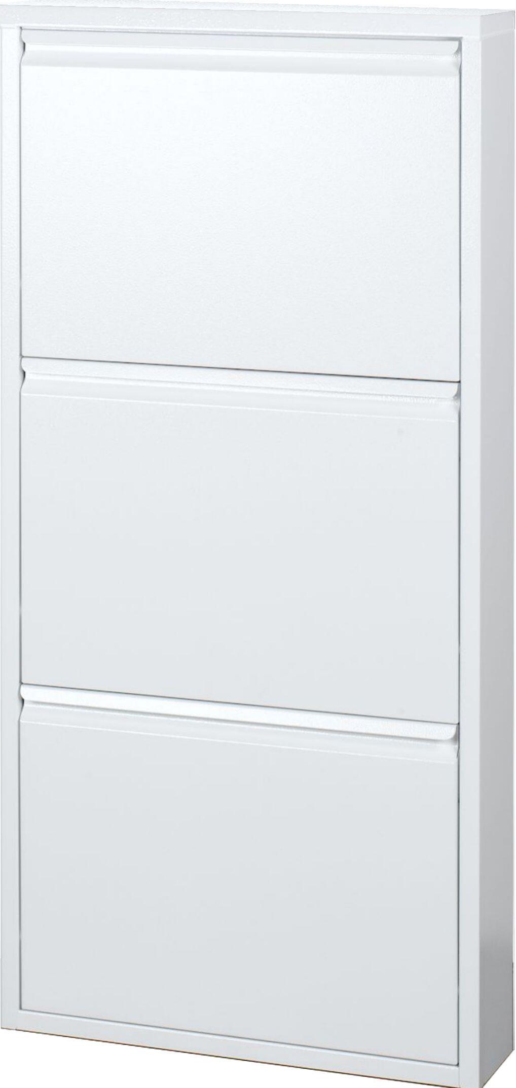 La scarpiera AS103 a tre ante in metallo bianco, compatta ed elegante, è la soluzione perfetta per organizzare le tue scarpe in piccoli spazi. Prodotta in Italia, è realizzata completamente in acciaio e arriva già montata pronta per l'installazione a parete. Grazie alle tre ante battenti e ai sei ripiani interni potrai riporre fino a sei paia di scarpe. Gli accessori di fissaggio sono inclusi nella confezione.