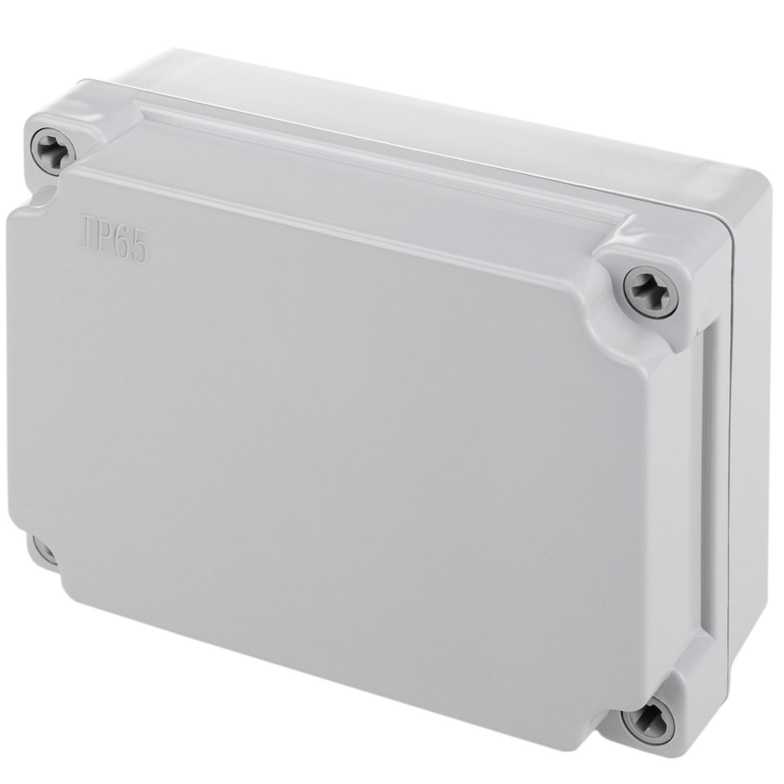 Scatola di distribuzione elettrica stagna per uso esterno con protezione IP65. Proteggi i tuoi impianti elettrici dalle intemperie e tienili al sicuro da polvere e umidità. La plastica ABS ne aumenta la resistenza e la leggerezza, facilitando l'installazione.