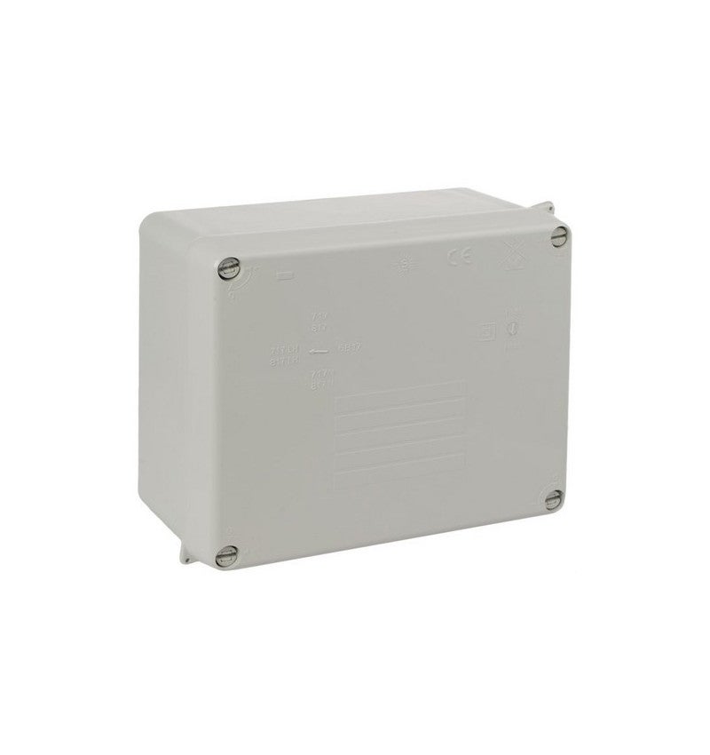 Scatola di derivazione bianca da installare a parete, con pareti lisce, sigillabile, grado di protezione IP65 IK07, viti a quarto di giro, dimensioni esterne 165x145x84mm.