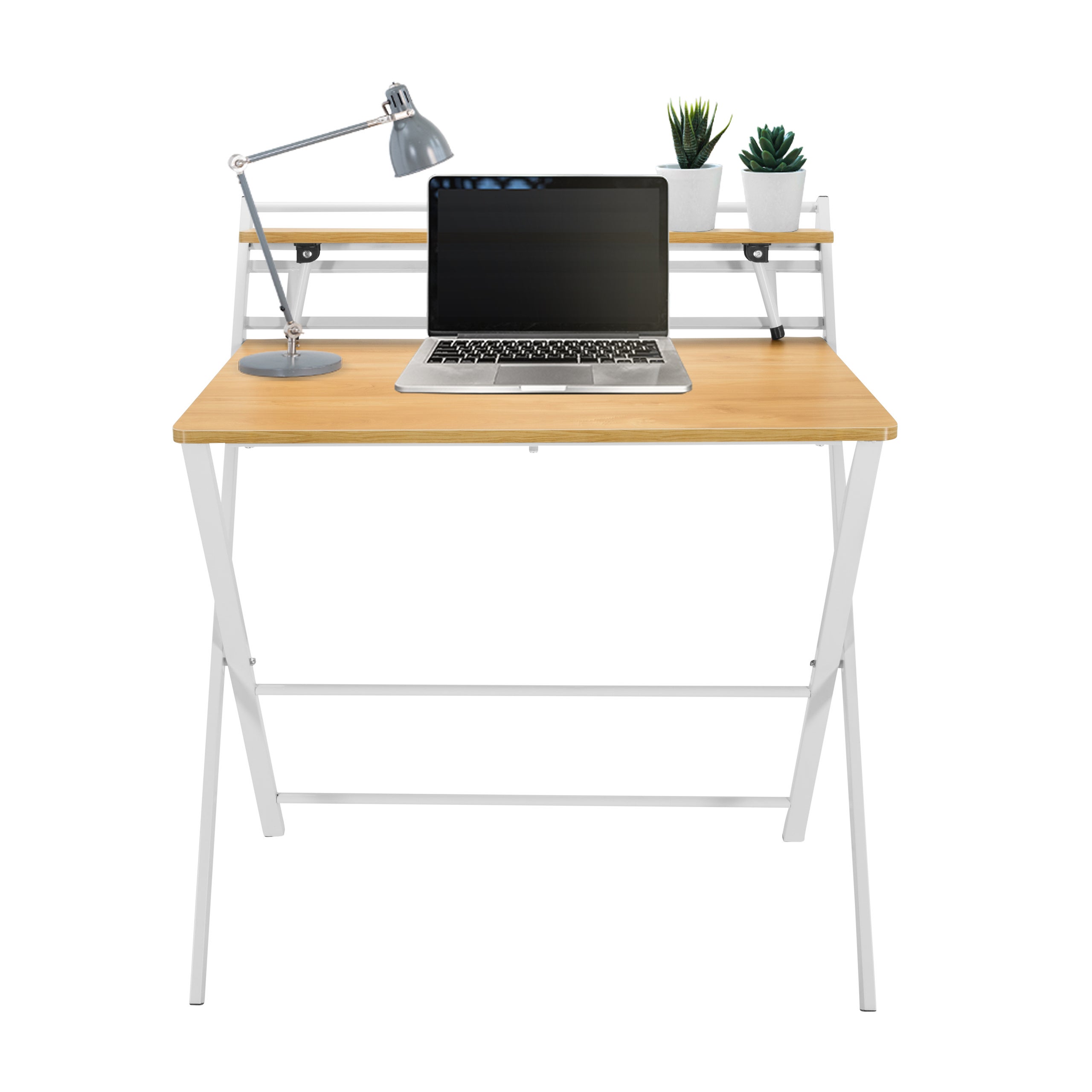 - Grazie alla pratica funzione di ripiegamento, la scrivania può essere allestita in pochi semplici passi e può essere richiusa di nuovo quando non è in uso e riposta in modo da risparmiare spazio