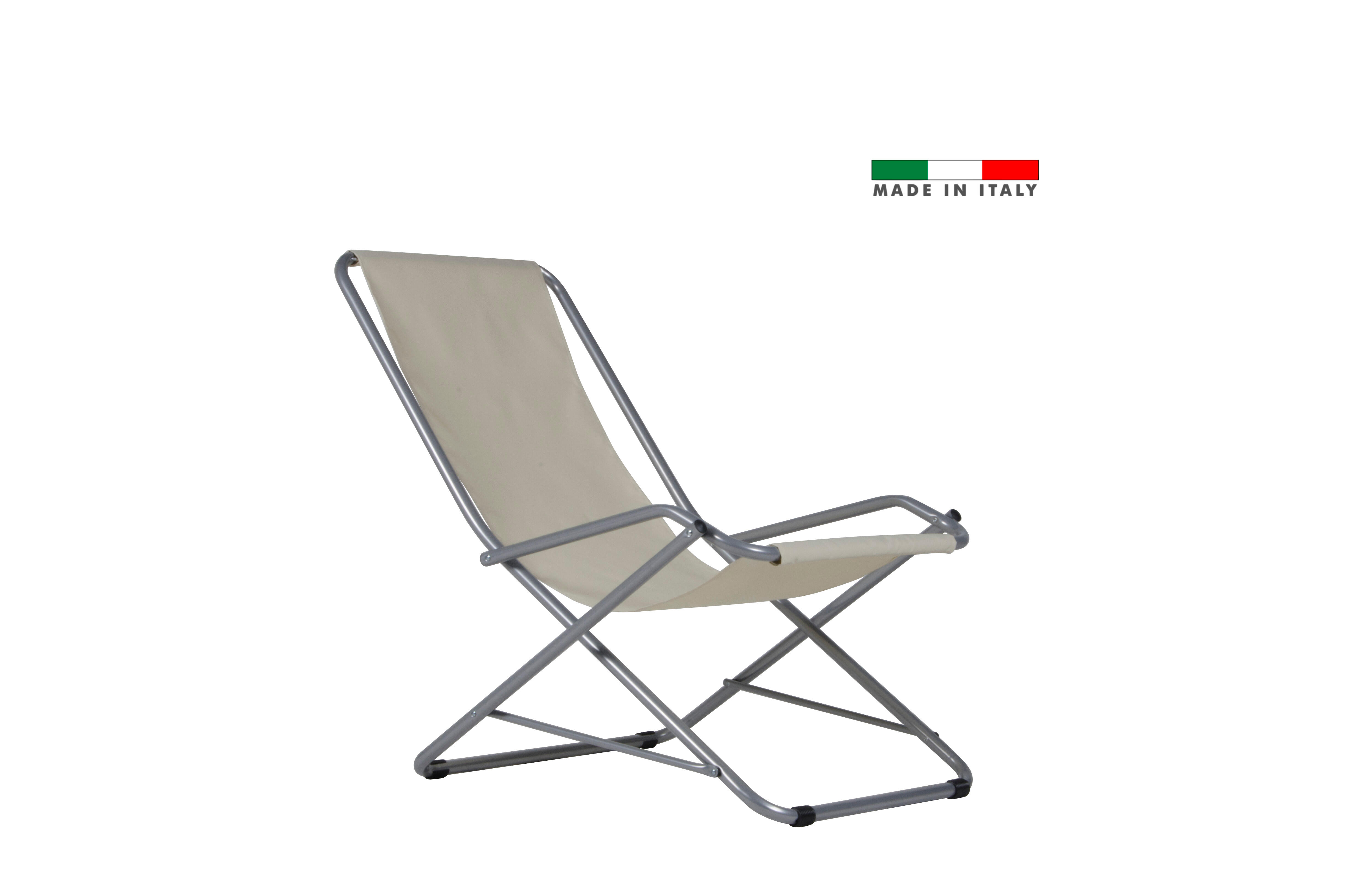 Sedia a sdraio da giardino in acciaio con braccioli pieghevole Swing FIAM, seduta in poliestere beige