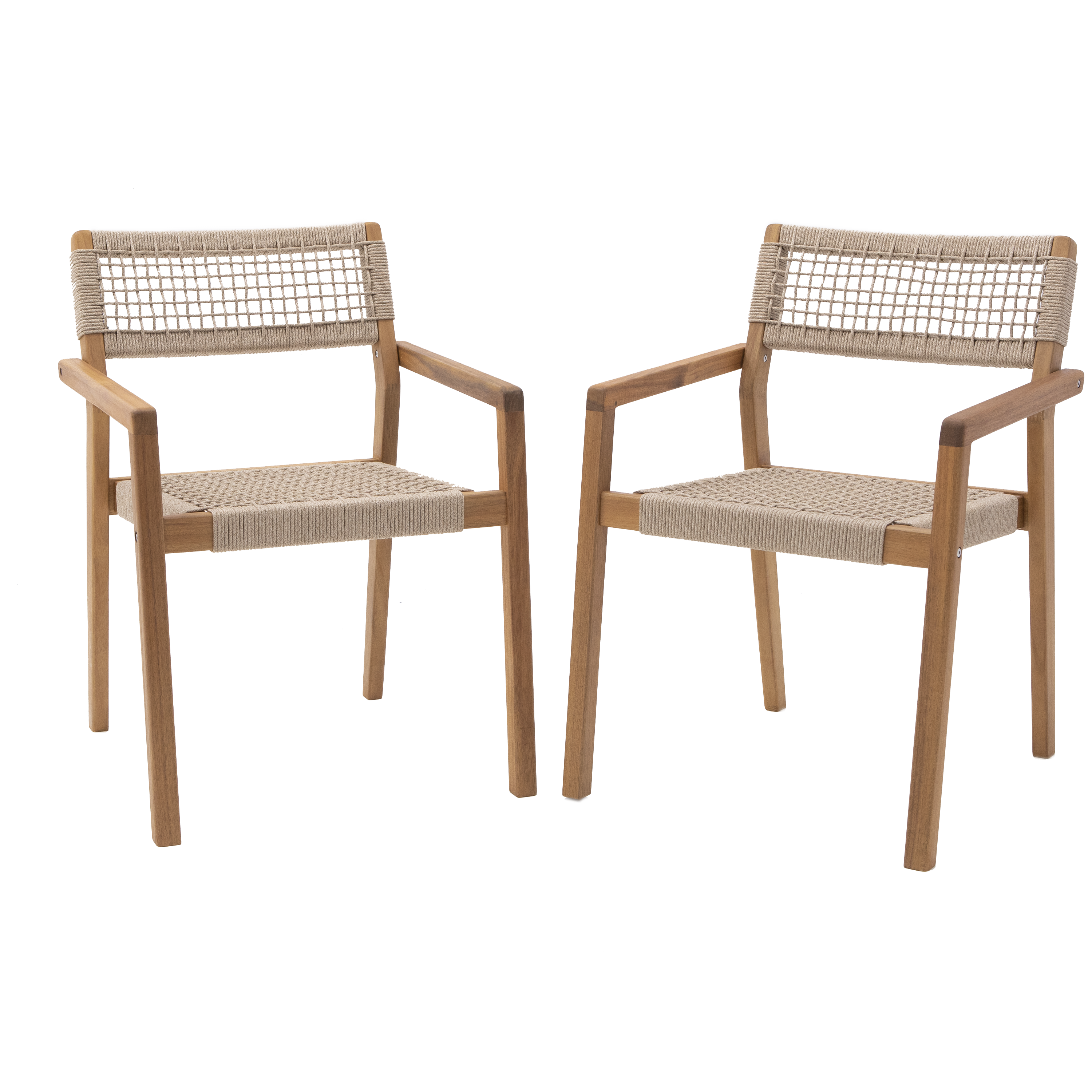 Sedia da giardino con braccioli Oasis NATERIAL, struttura in acacia legno, seduta in corda, 2 pezzi