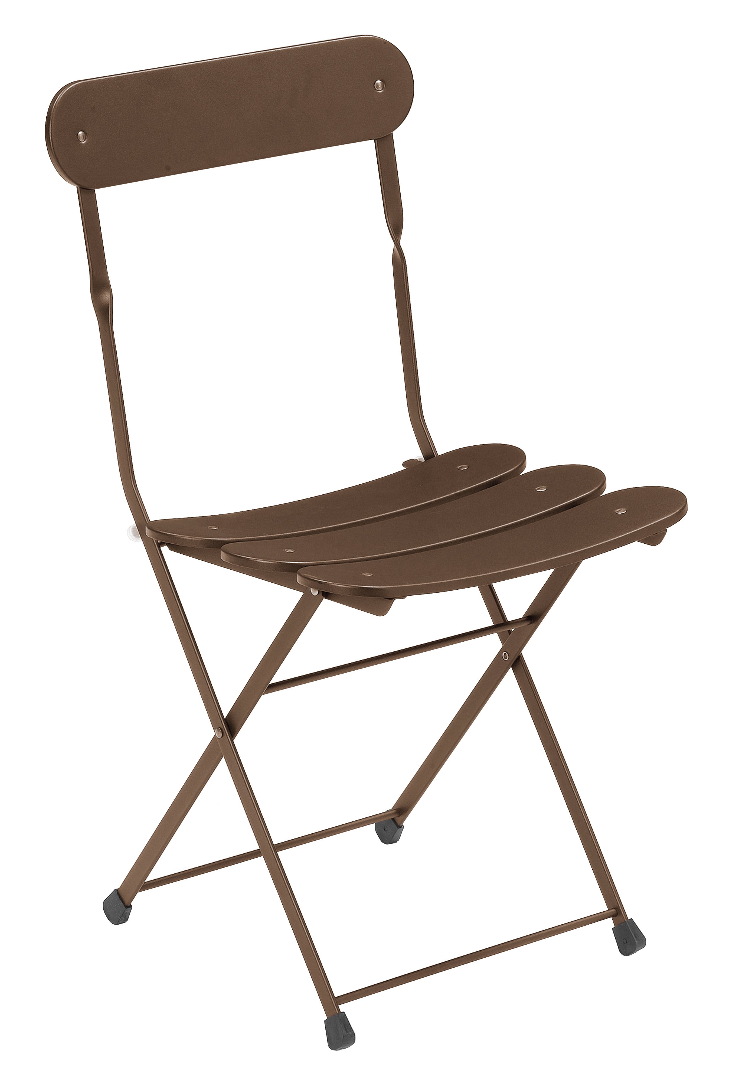 Sedia pieghevole e impilabile della serie CASSIS strutturata in acciaio verniciato in colore marrone. Dimensioni aperti: 42 x 48 x 80.5 cm (Larghezza x Profondità x Altezza)