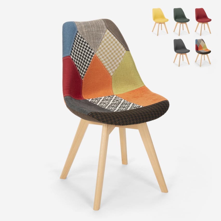Sedia design nordico legno e tessuto e cuscino cucina bar ristorante Dolphin - Patchwork 3