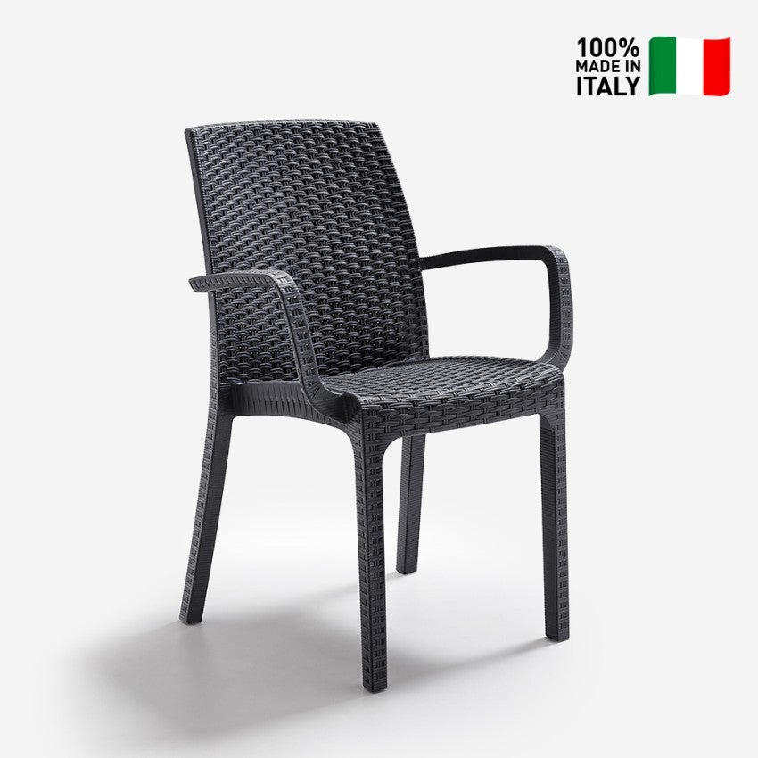 Sedia rattan impilabile braccioli giardino bar esterno Indiana BICA - Nero