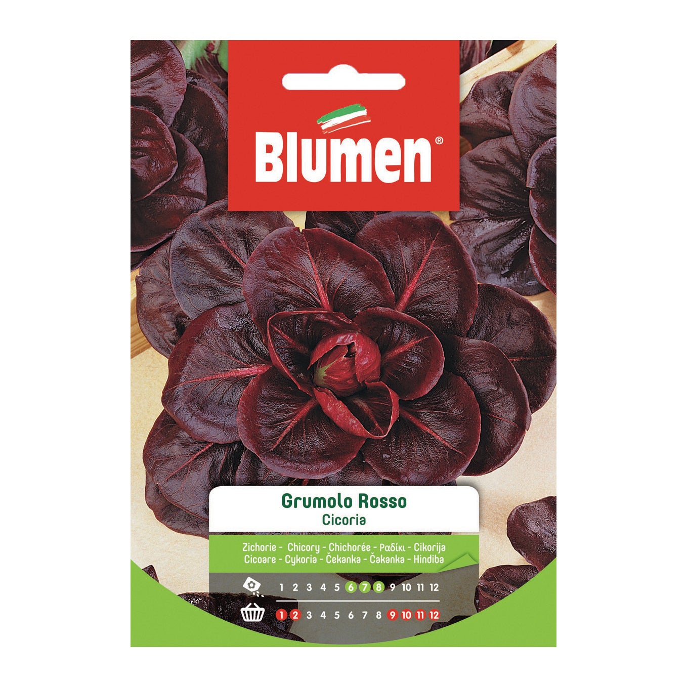 Cespo poco voluminoso (100 g circa). Il grumolo è abbastanza compatto, le foglie tondeggianti , larghe, concave, avvolgenti, spesse e di colore rosso sanguigno
