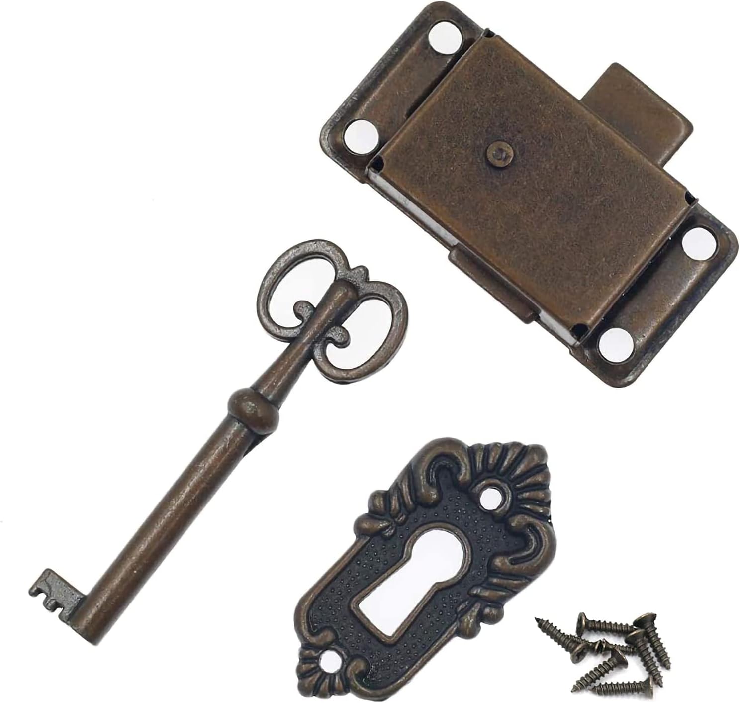 Serratura antica per porta di armadietto, set di serrature antiche, serratura decorativa con chiavi e viti, per cassette postali, armadietti, credenze