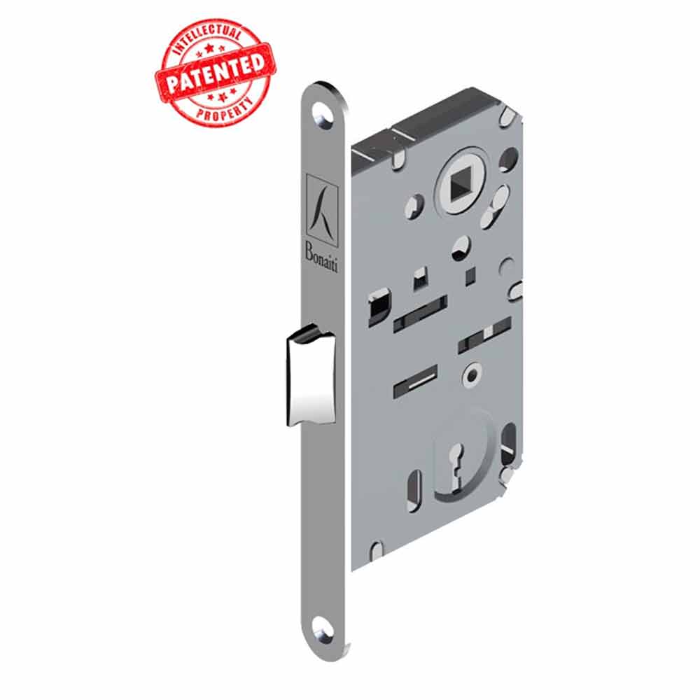Serratura BONAITI B-Split con scrocco centrale reversibile ottone lucido per porte interne in legno
