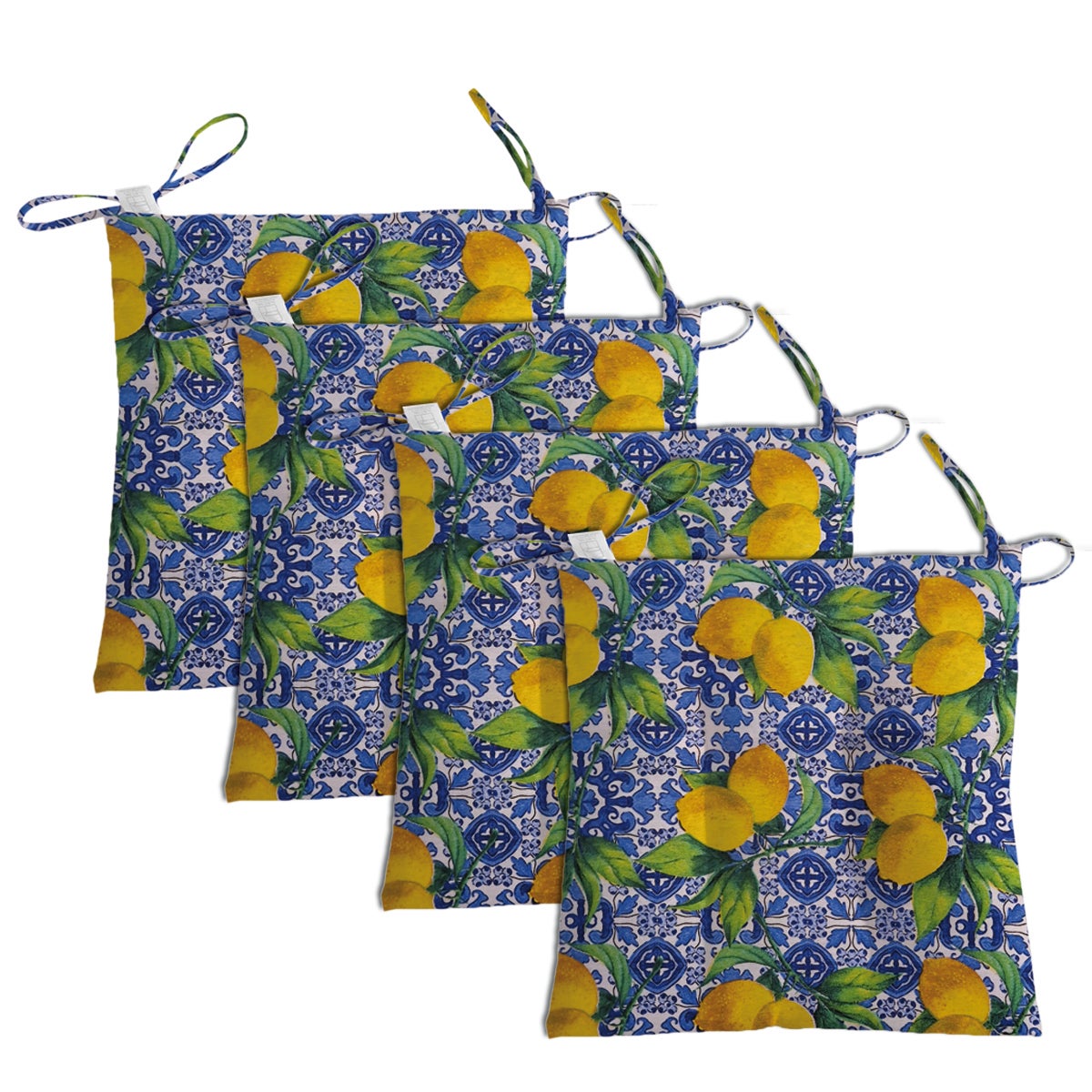 Set 4 coprisedia in policotone, disegno limoni. Misure 40x40 cm