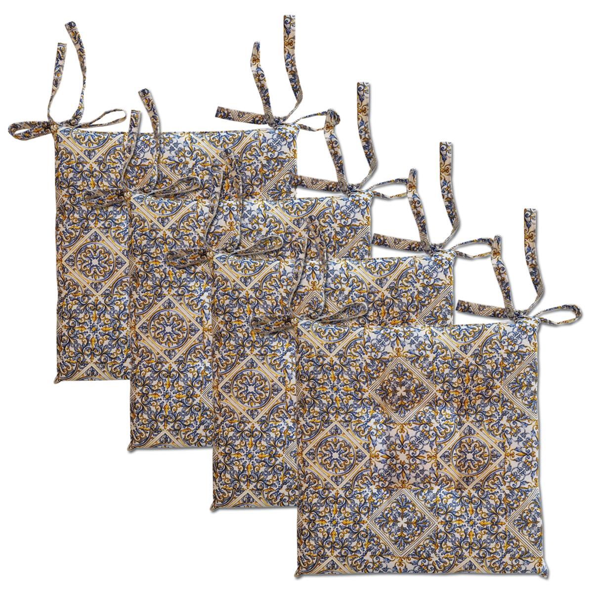 Set 4 coprisedia in policotone, disegno maiiolica. Misure 40x40 cm